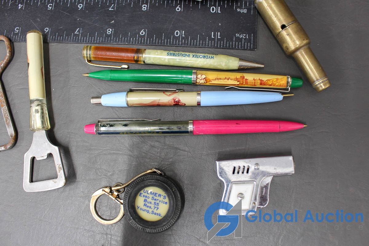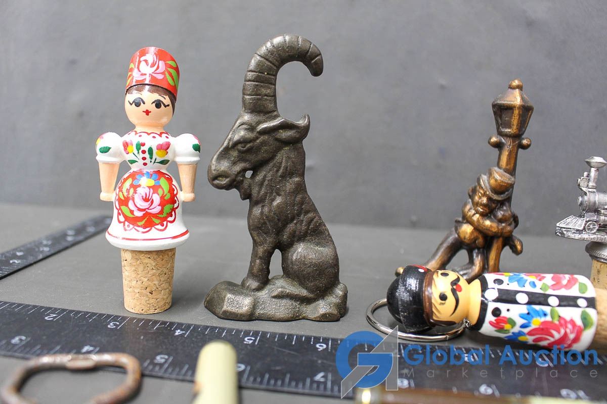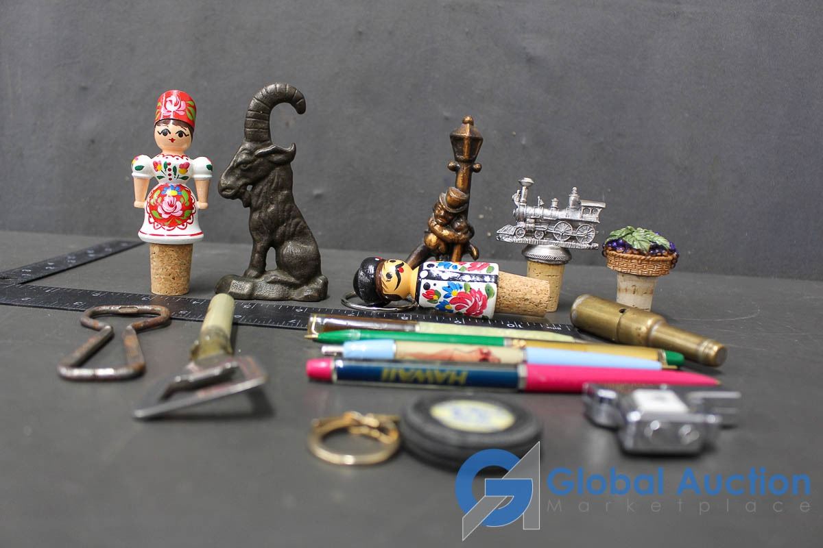 Collection of Figural Bottle Openers, Advertising Floatie Pens, Keychains & Bottle Corks