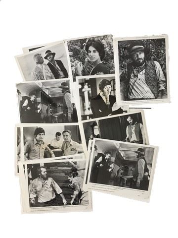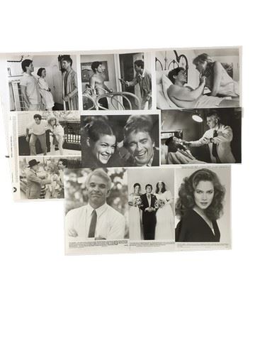 Collection of 4 press kits with a large collection of black and white publicity stills included, sized mainly 8x10's. (1970's-90's). From Warner Brothers "The Man With Two Brains" (1983), from Columbia Pictures "Micki & Maude" (1984), from Paramount Pictures " The Man Who Wasn't There" (1983), from MGM "Masquerade" (1988), collection of ~50 black and white stills from "Mixed Company 1974, "The Missouri Breaks" (1976).