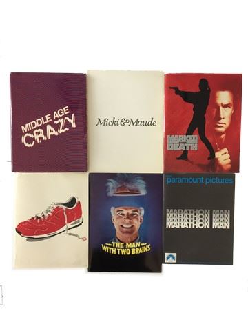 Collection of 6 press kits with black and white publicity stills included, sized mainly 8x10's. (1970's-90's). From Columbia Pictures "Micki & Maude" (1984), from 20th Century Fox "Marked For Death" (1990), from 20th Century Fox "Middle Age Crazy" (1980), from 20th Century Fox "The Man With One Red Shoe" (1985), from Warner Brothers "The Man With Two Brains" (1983), from Paramount Pictures "Marathon Man" (1976).
