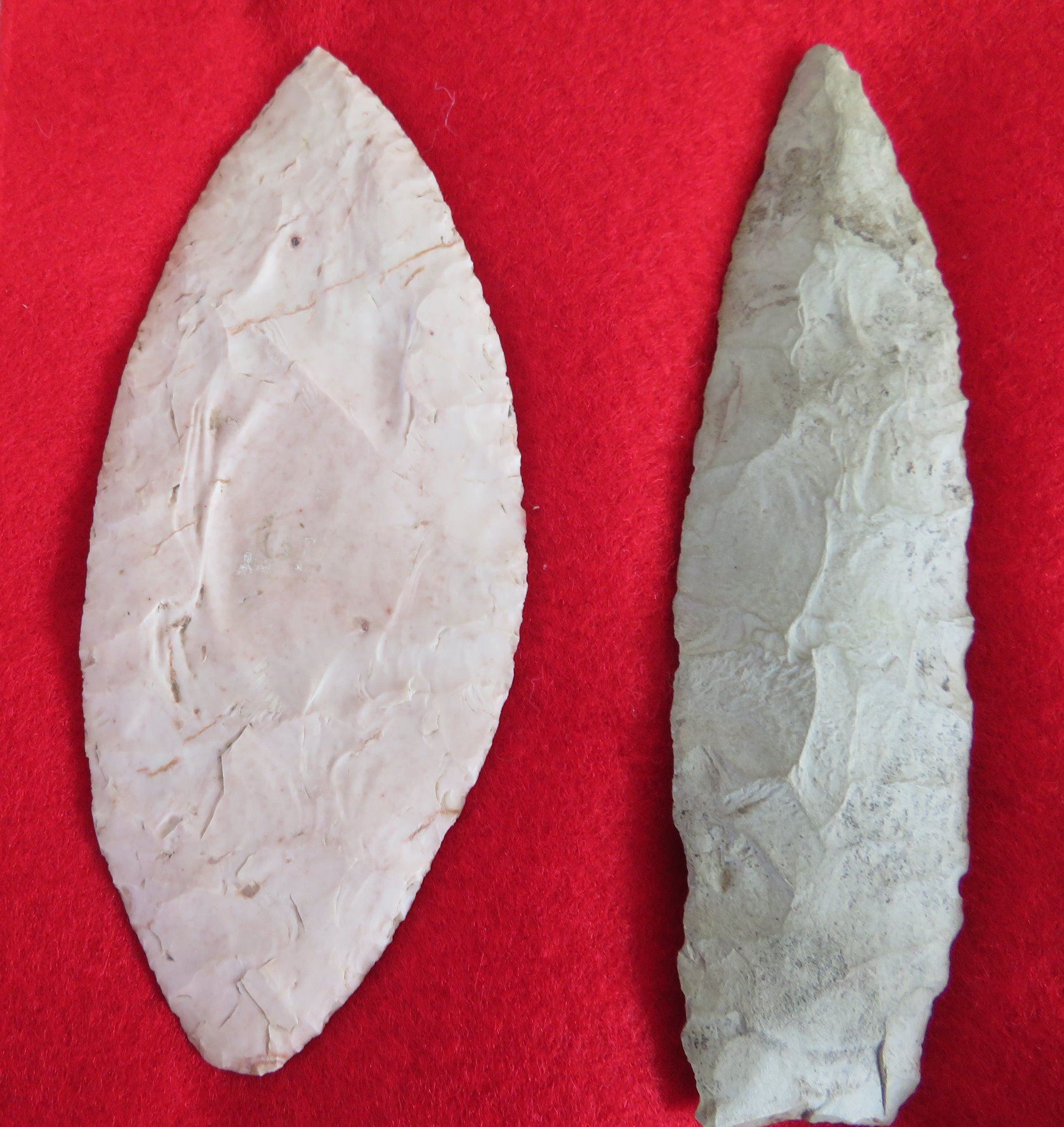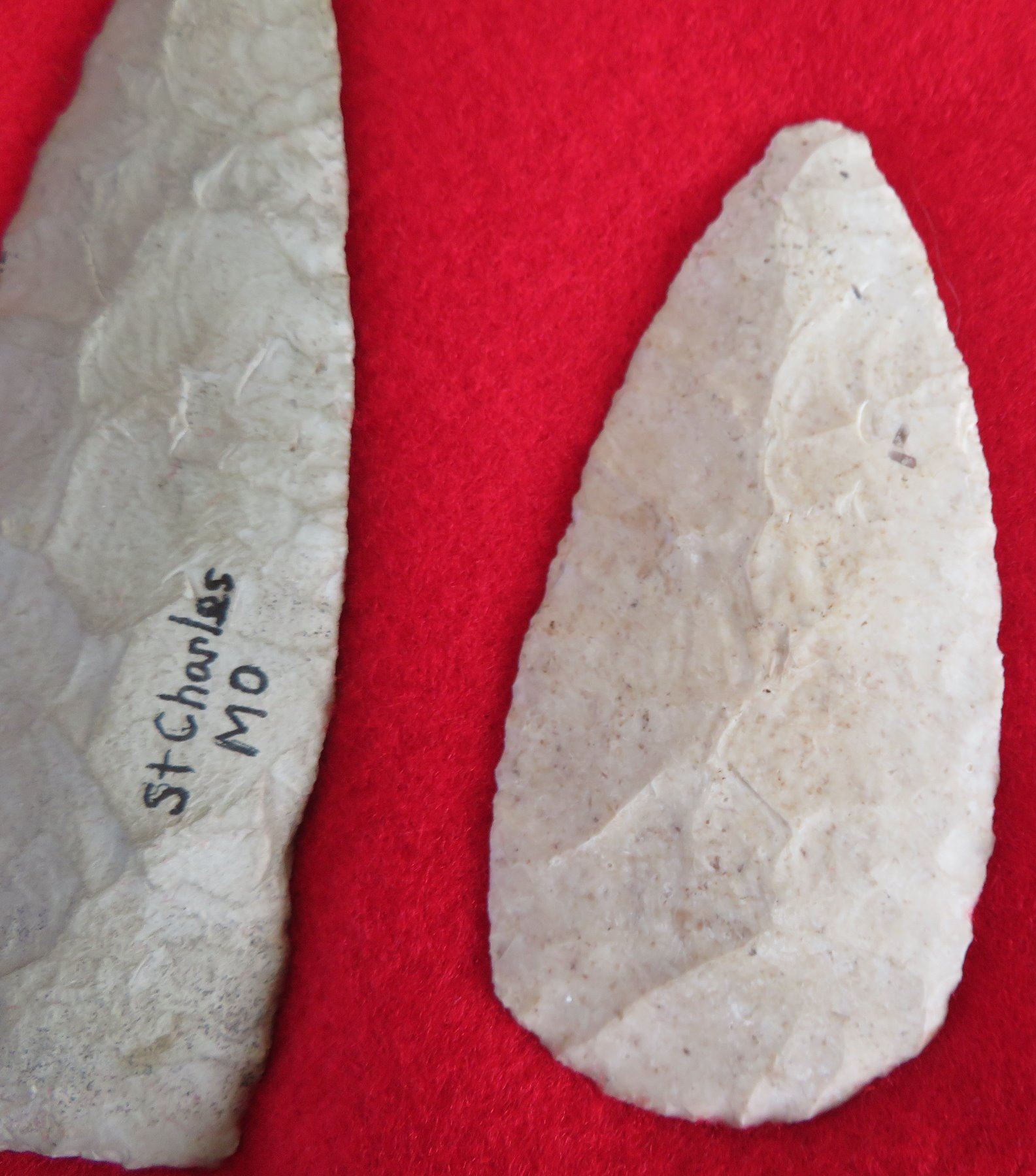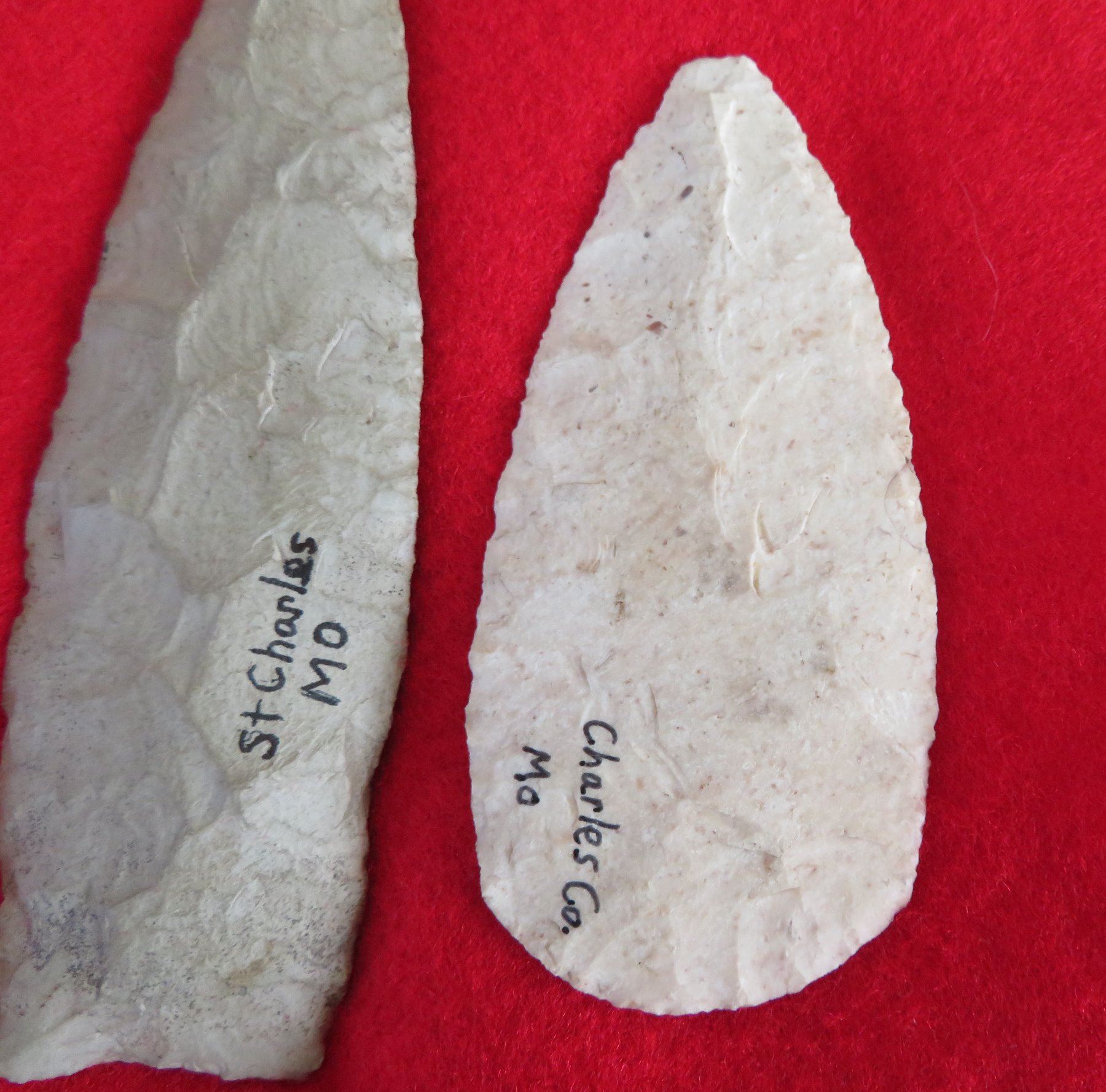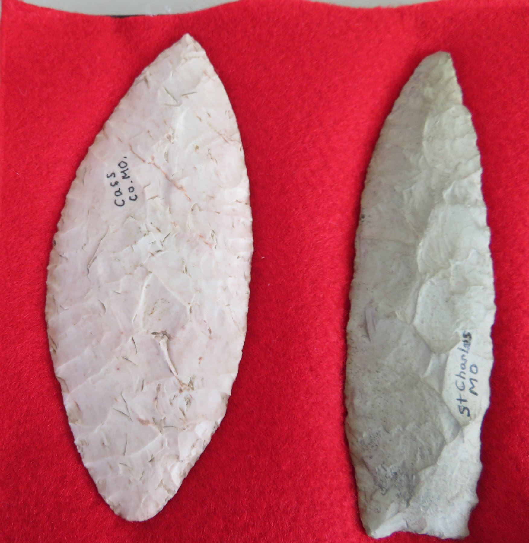 Collection of Flint Artifacts, pre-historic items. Made of chert, the longest item measures 5 1/4". Missouri. Frame not included. Nice blades. Condition: As found, good, see images. Shipping: $25.50 w/insurance and signature, due to value.