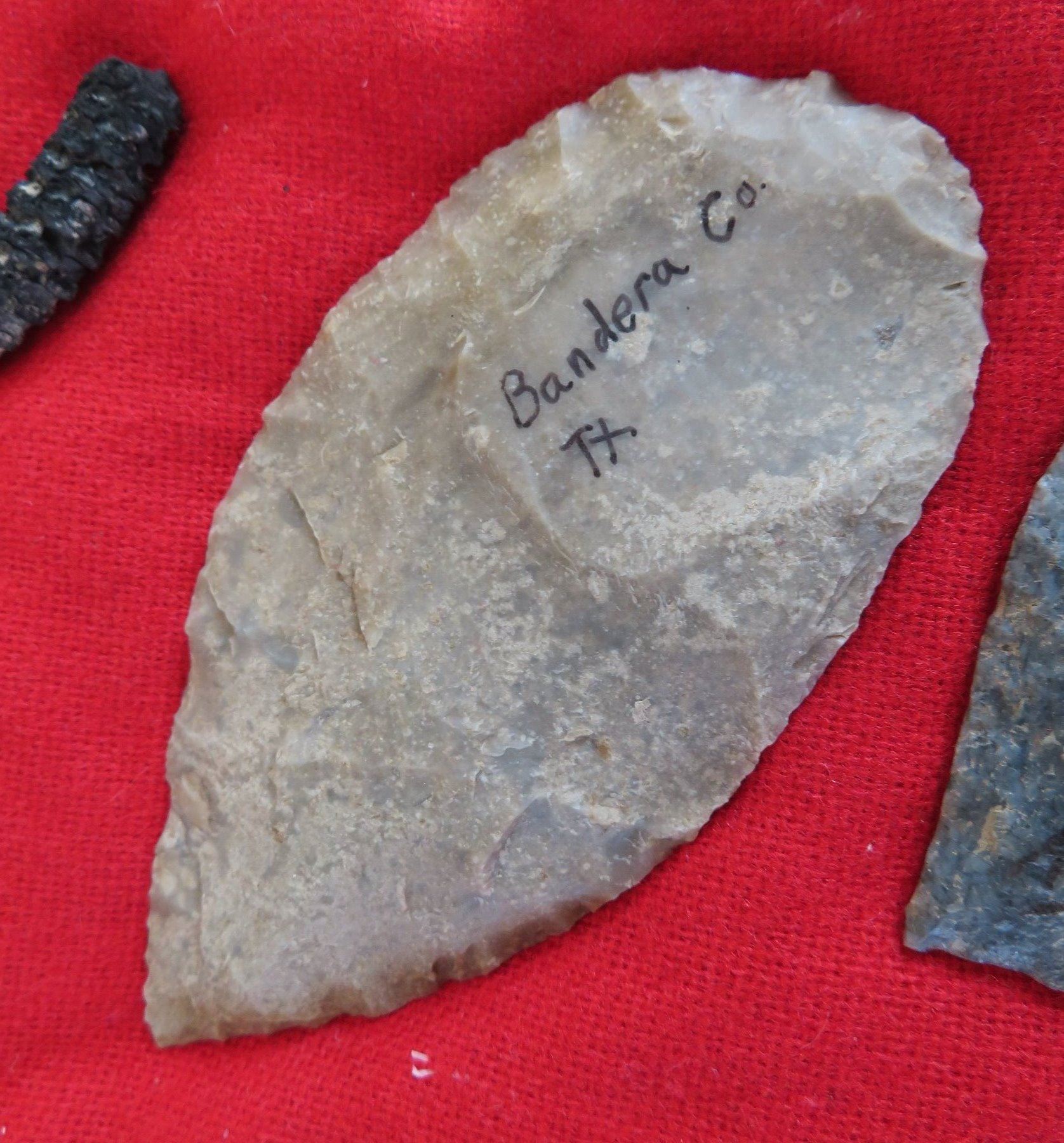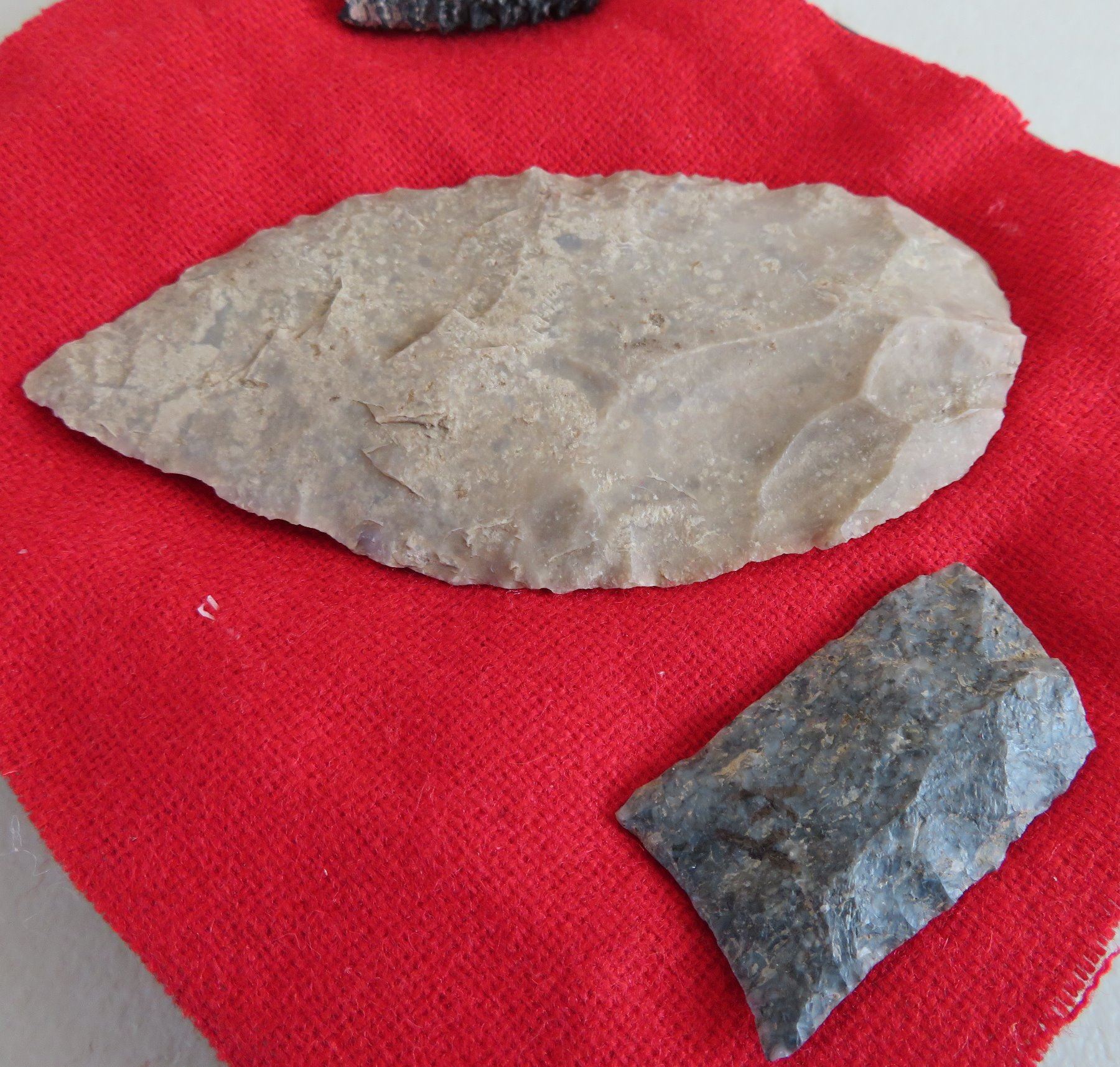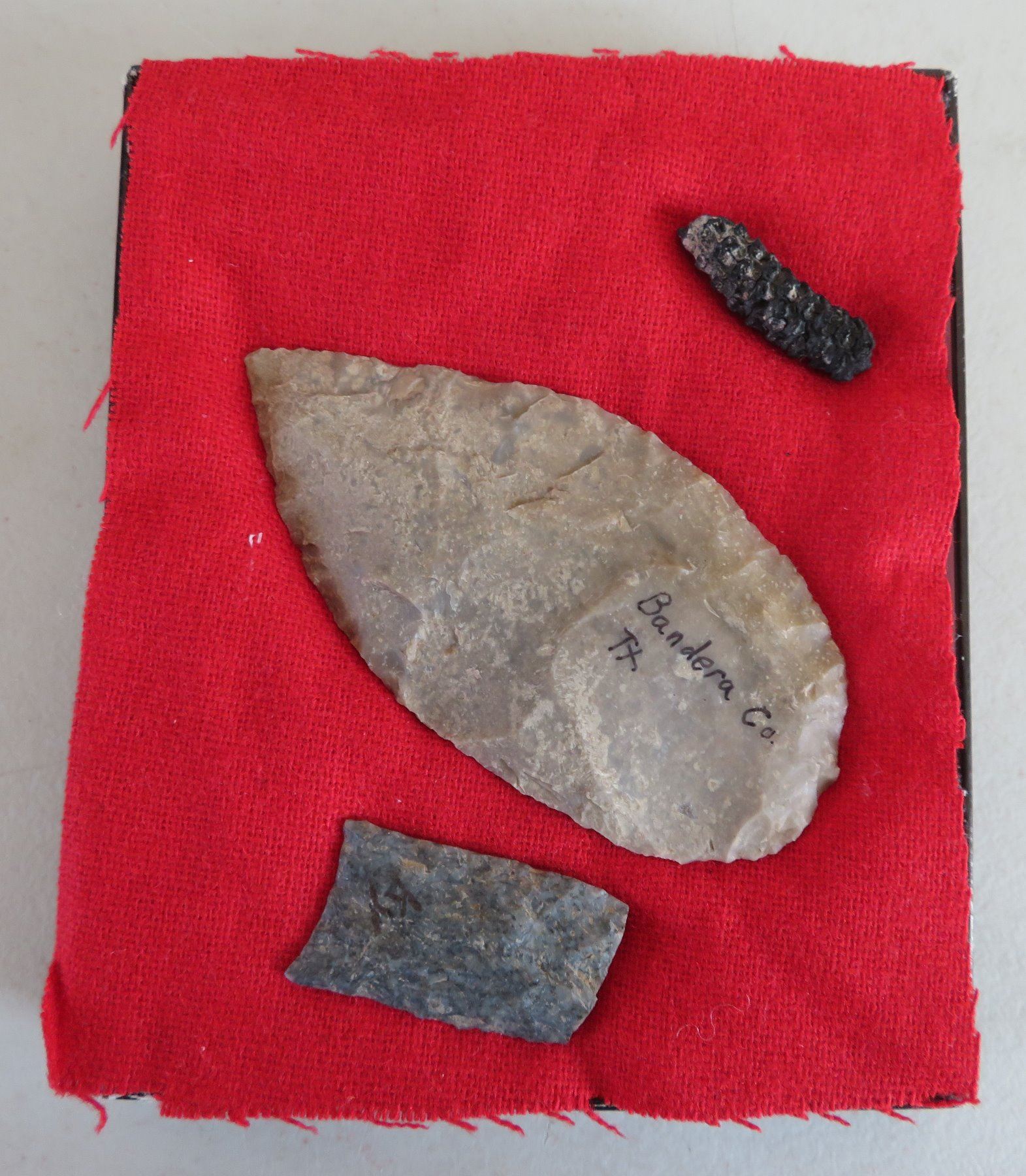 Collection of Flint Artifacts, pre-historic items. Made of chert, the longest item measures 4 1/4". Texas. Frame not included. Also pre-historic burned corn cob. Condition: 1 partial point, see images. Shipping: $24.50 w/insurance and signature, due to value.