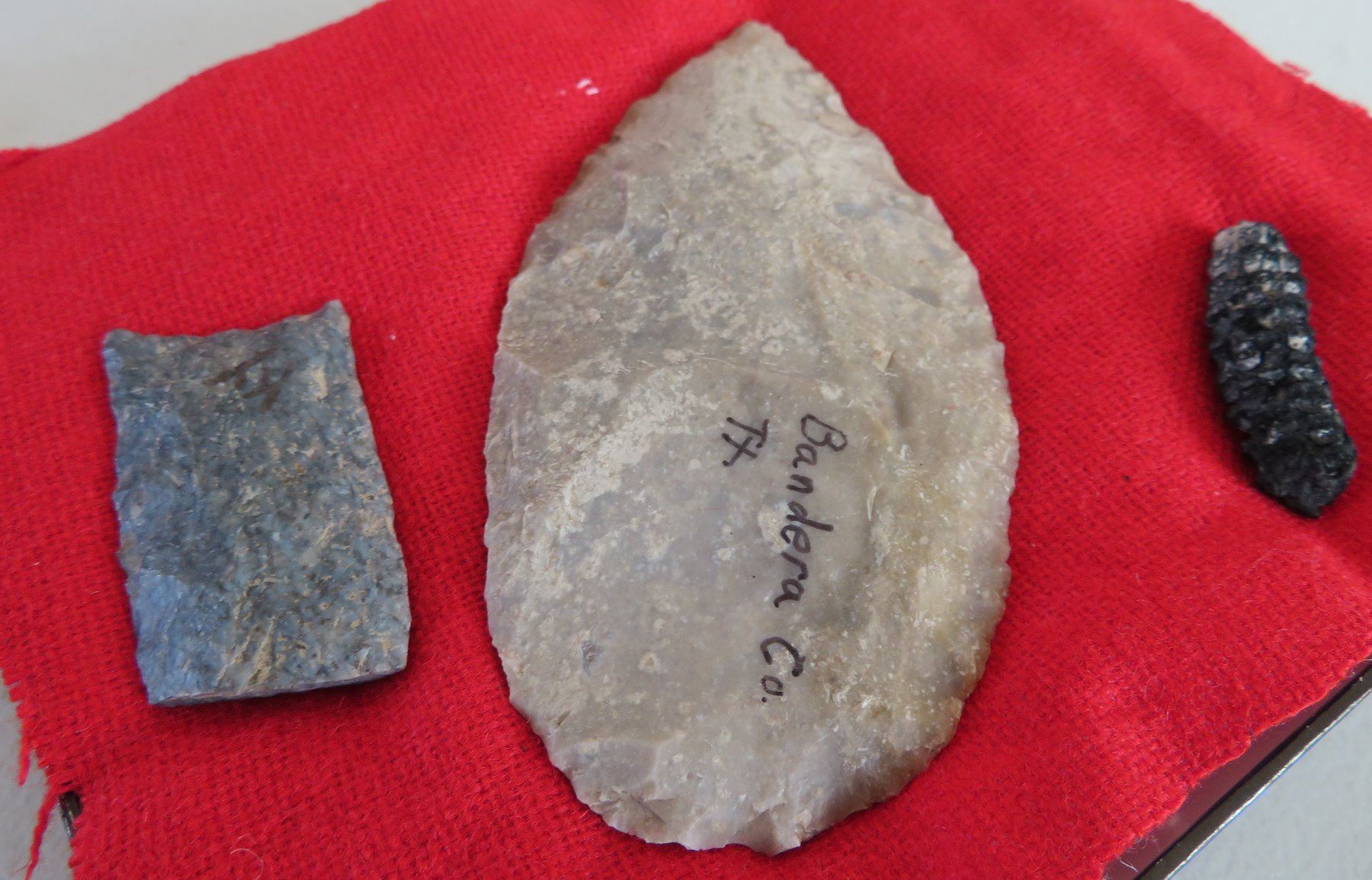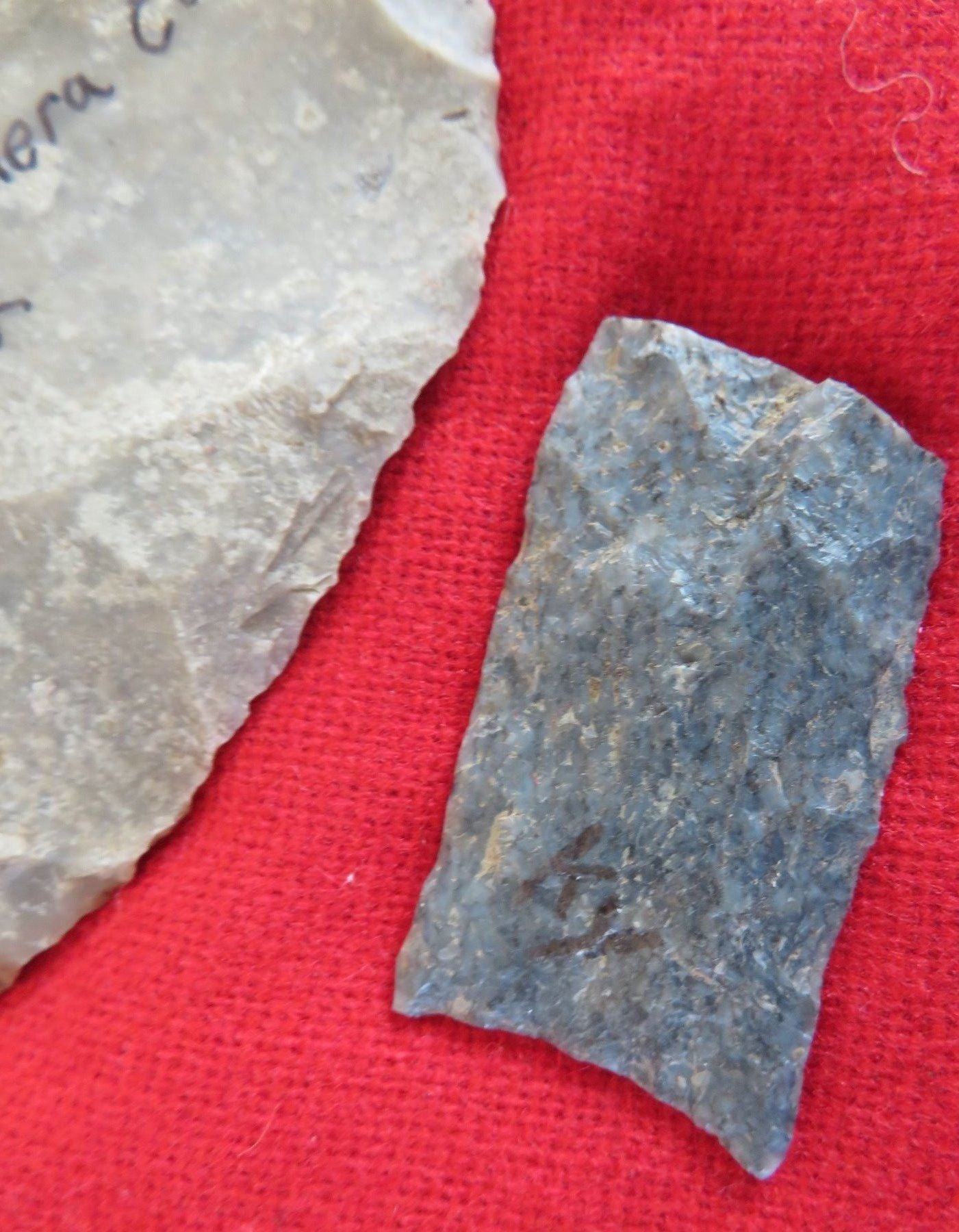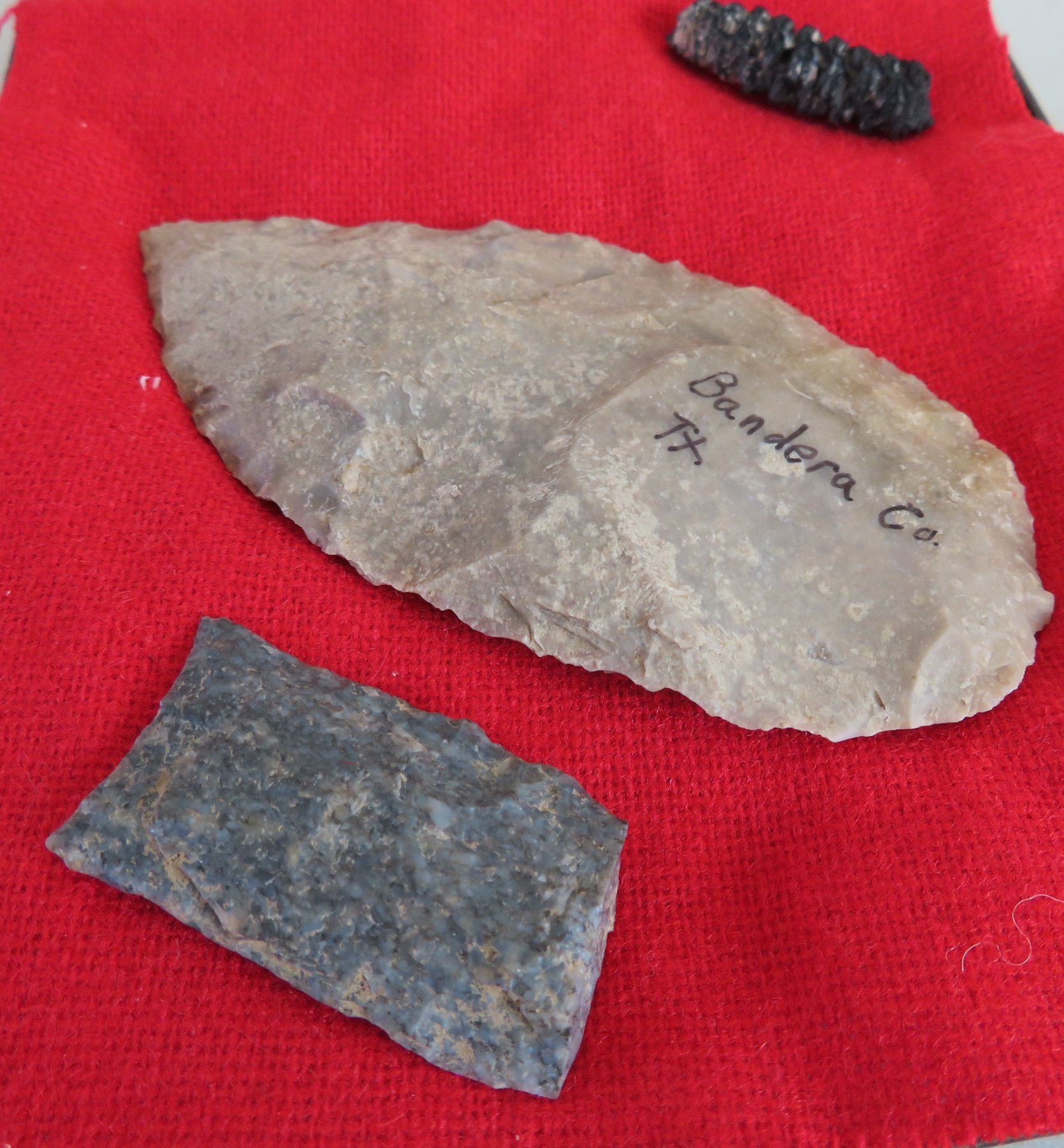 Collection of Flint Artifacts, pre-historic items. Made of chert, the longest item measures 4 1/4". Texas. Frame not included. Also pre-historic burned corn cob. Condition: 1 partial point, see images. Shipping: $24.50 w/insurance and signature, due to value.