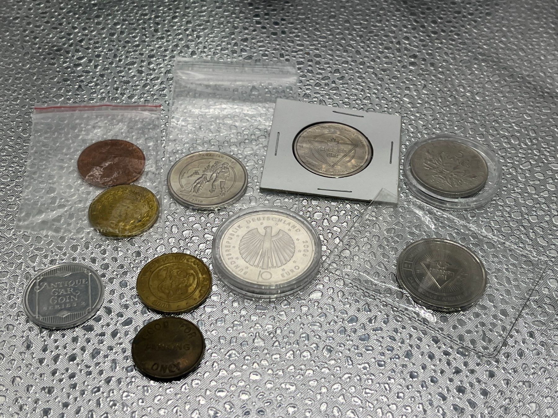 Collection of Foreign Coins and Tokens featuring German World Cup 10 Euro 18g 92.5% Silver