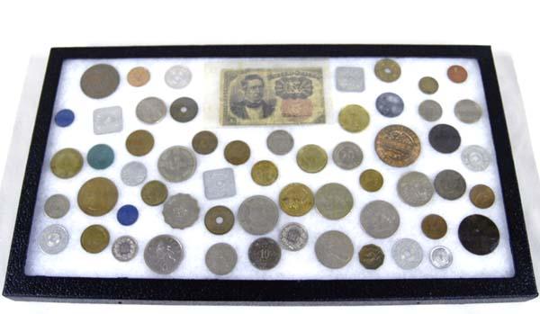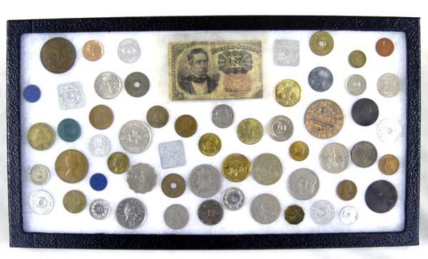 Collection of Foreign Money in Riker Box 50+ pieces. SHI $15.