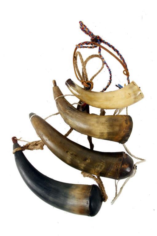 Collection of Four Antique Powder Horns Circa 1900-1940Circa 1900-1940