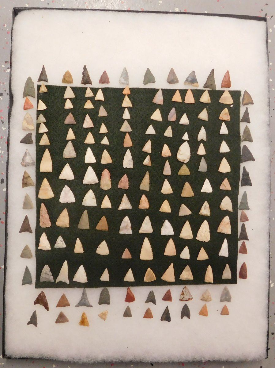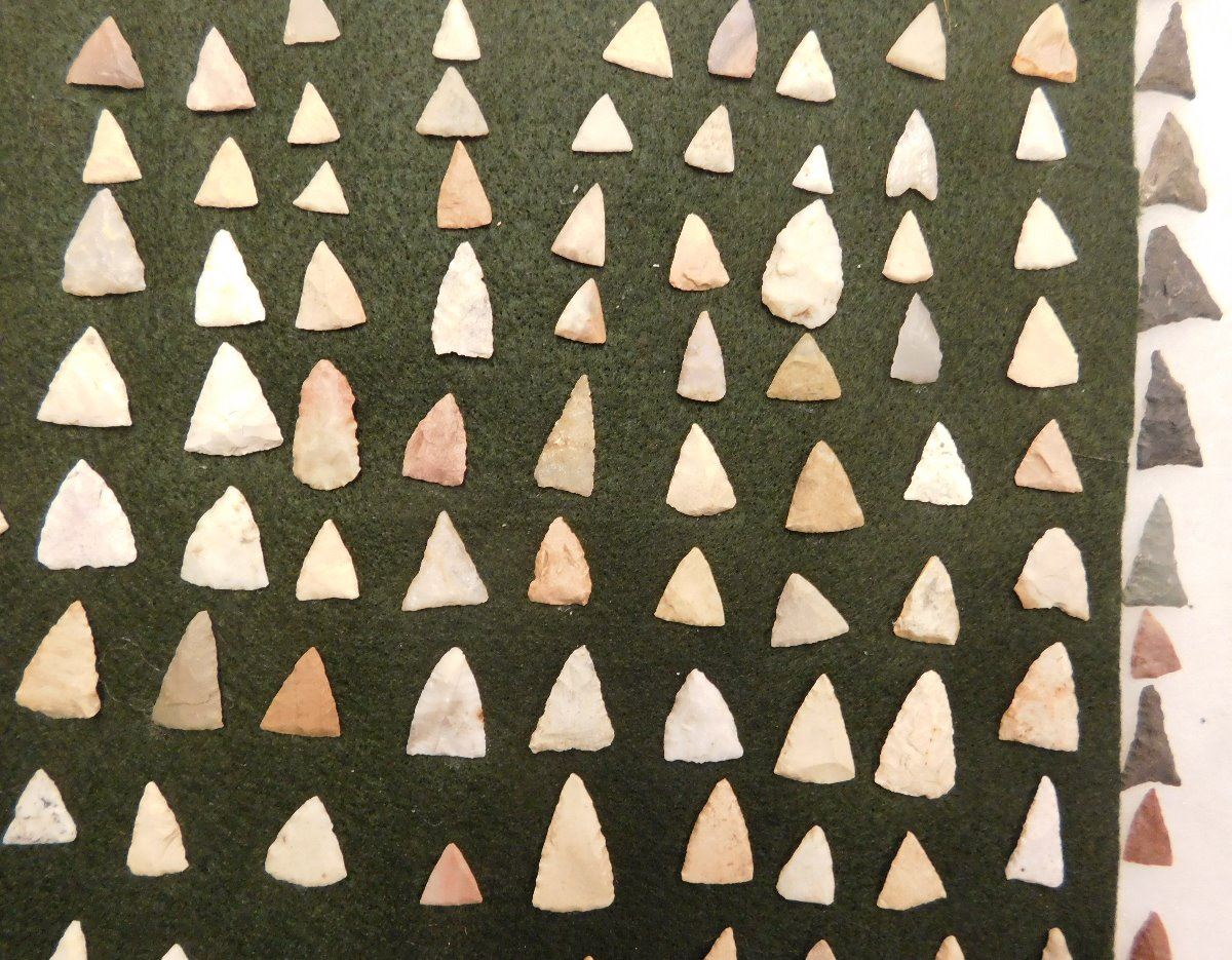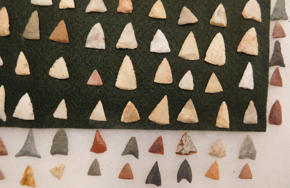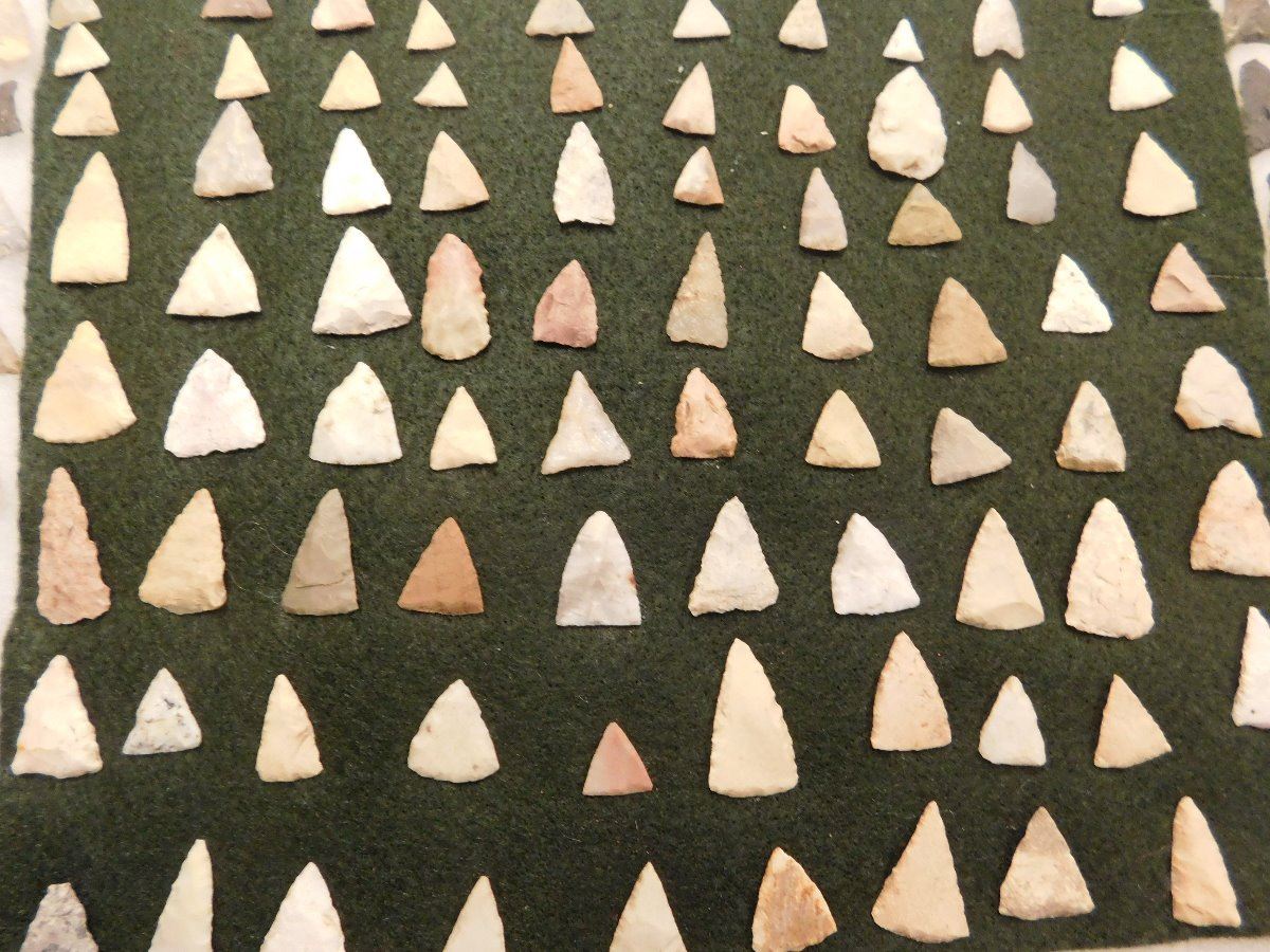 Collection of Hamilton Points, pre-historic items. Made of chert, flint and quartz, the items measure from 1/4" to 1". From Alabama. 150 points in all. Frame not included. Condition: As found, see images. Shipping: $20.00 w/insurance and signature.