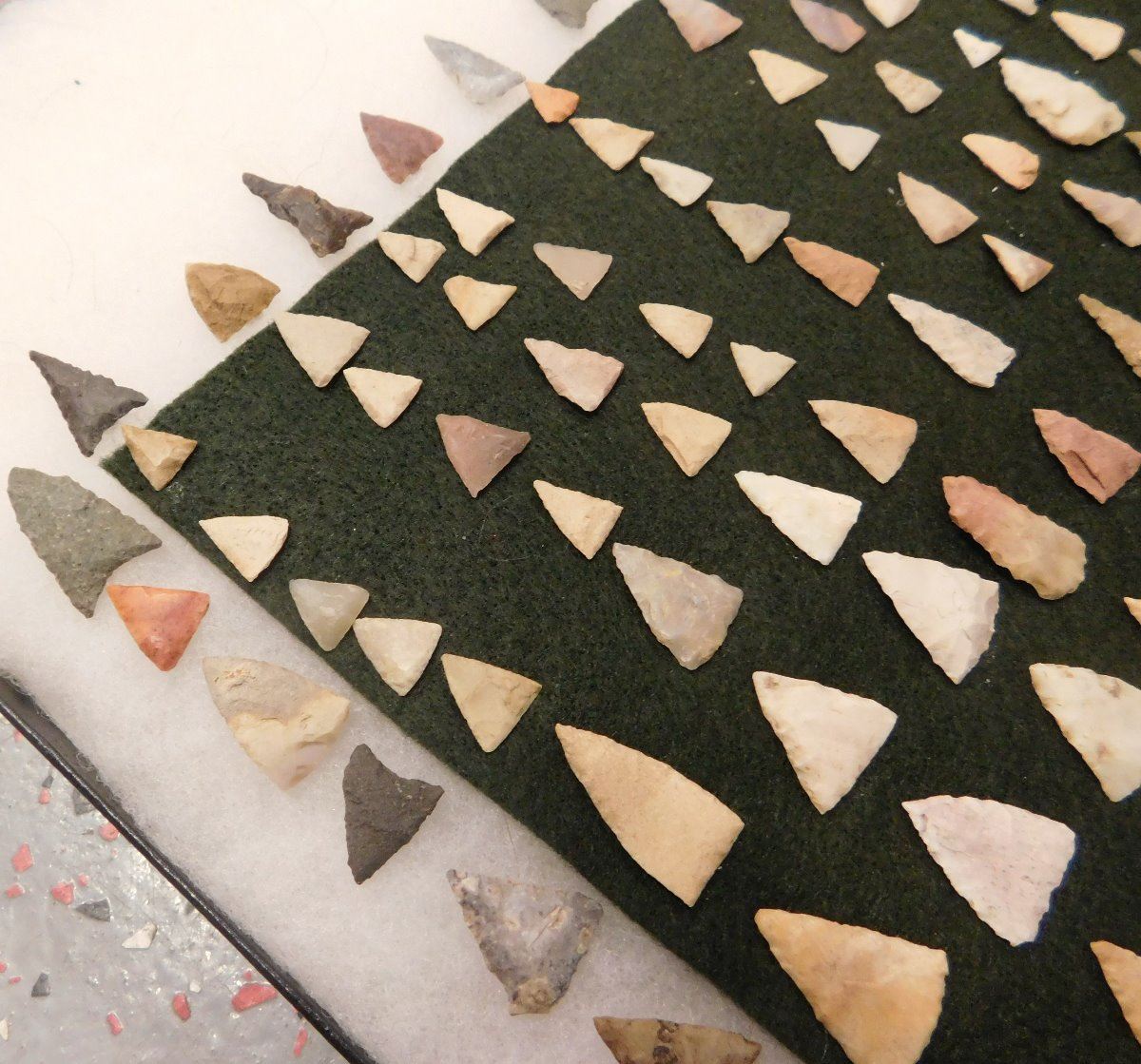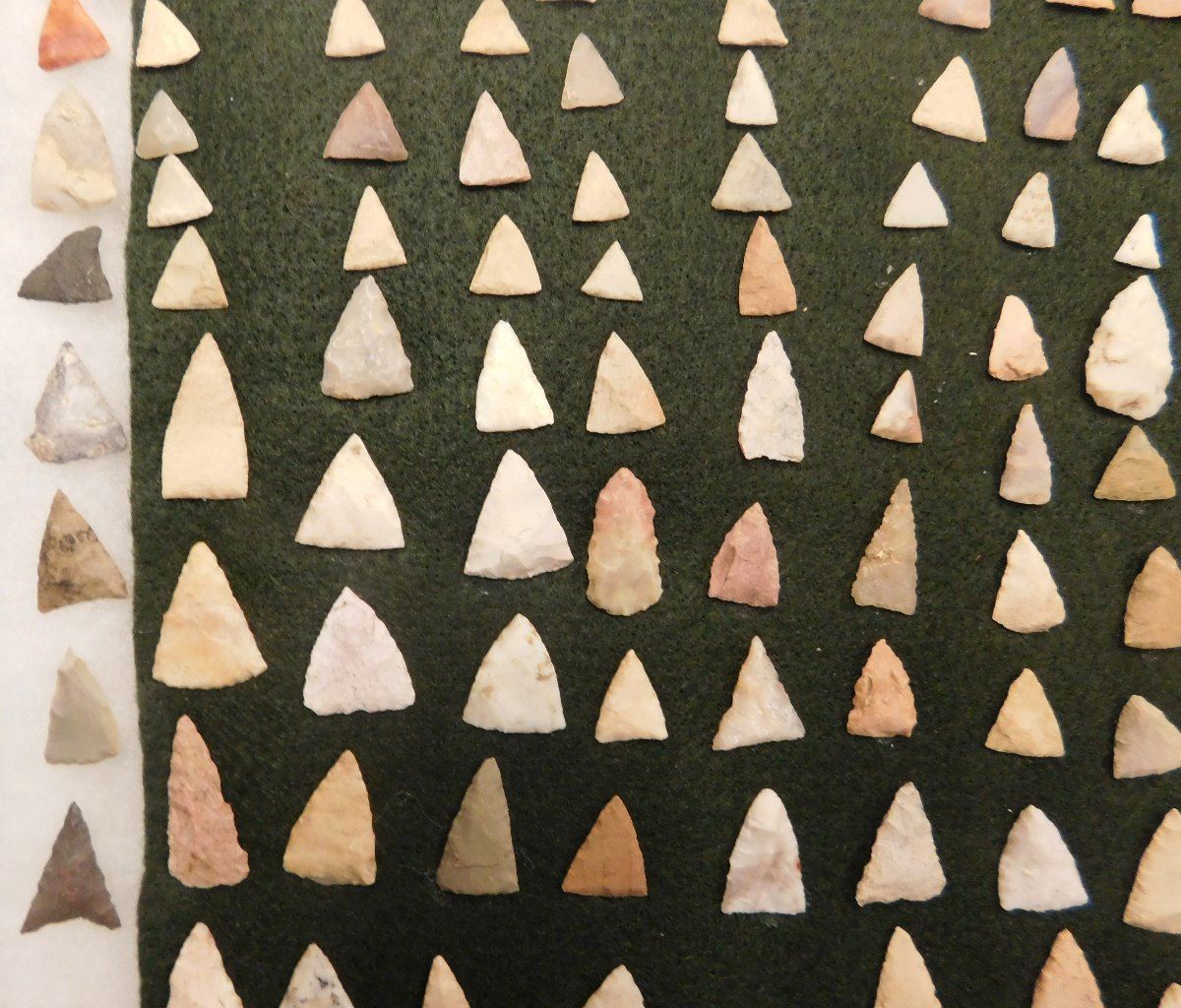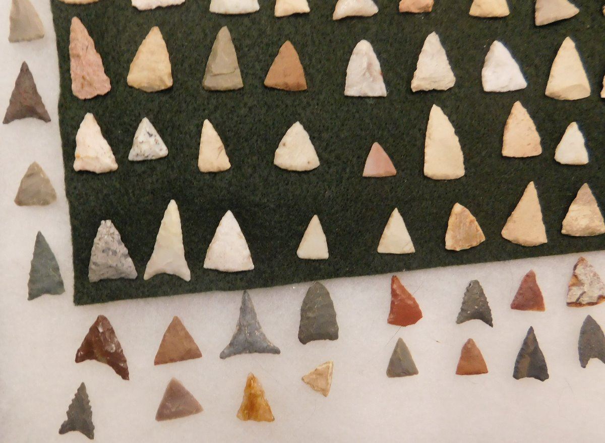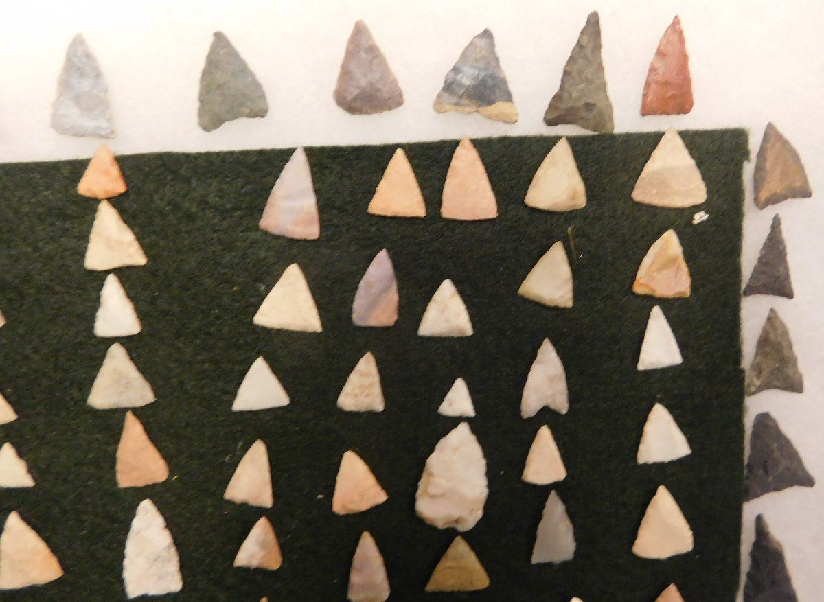 Collection of Hamilton Points, pre-historic items. Made of chert, flint and quartz, the items measure from 1/4" to 1". From Alabama. 150 points in all. Frame not included. Condition: As found, see images. Shipping: $20.00 w/insurance and signature.