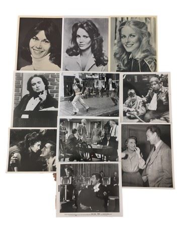 Collection of ~75 black and white, 8"x10" publicity stills from some of the most iconic actors of our time. Spanning several decades, this collection includes such icons as George Burns, John Belushi, Kirk Douglas, Lucille Ball, Susan Anton, Farrah Fawcett, William Baldwin, Ringo Star in "Caveman", Kate Jackson and Jaclyn Smith.