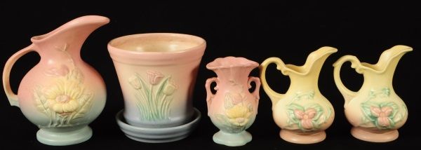 4 Pitchers and 1 Planter. Marked Hull. 7-1/2" H.
