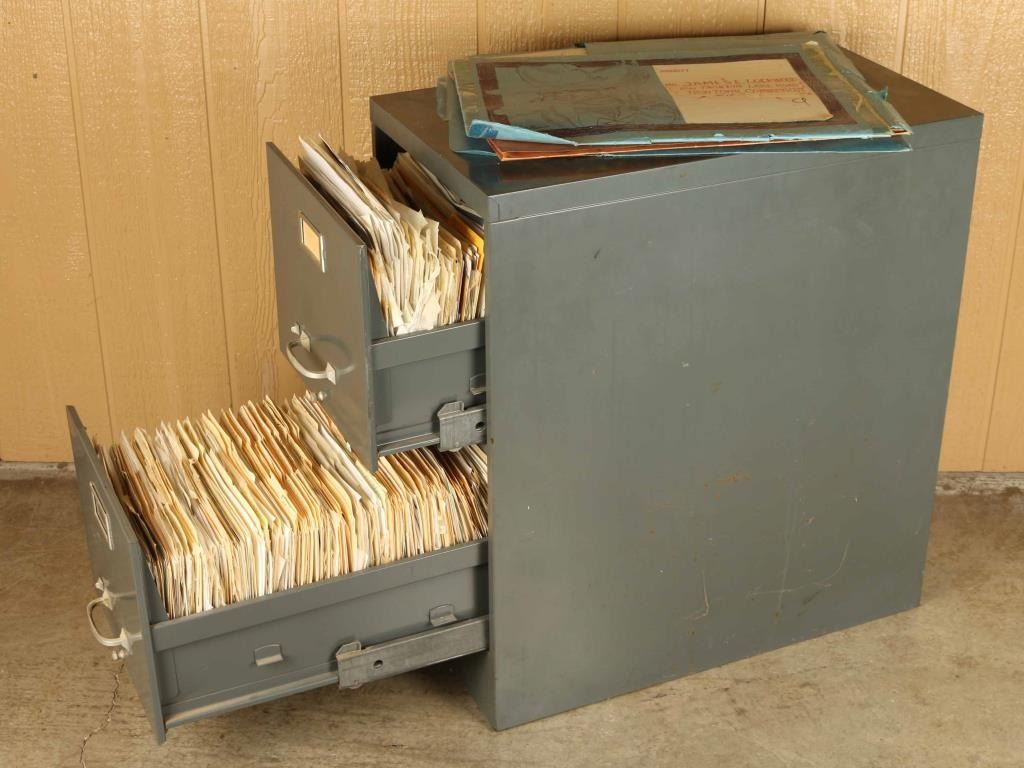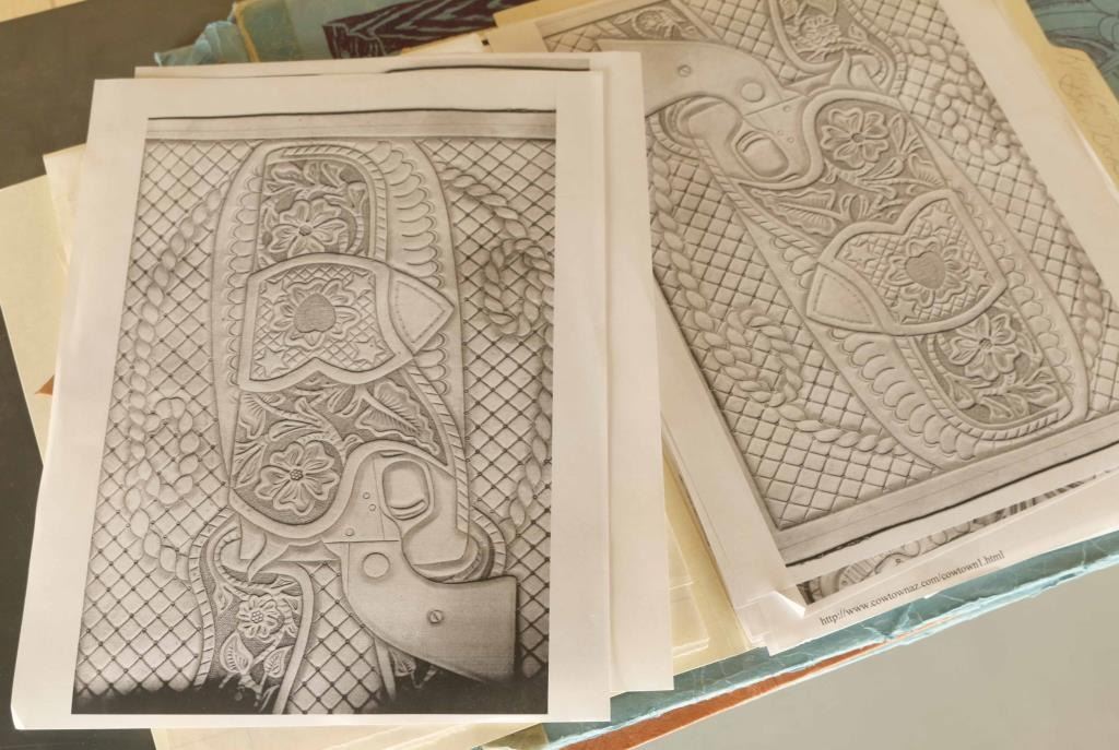 From the Jim Lockwood Prescott Leather Maker Collection, includes all original designs and some reproductions from movies and 2-drawer filing cabinet full. Known by his company name "Legends in Leather".