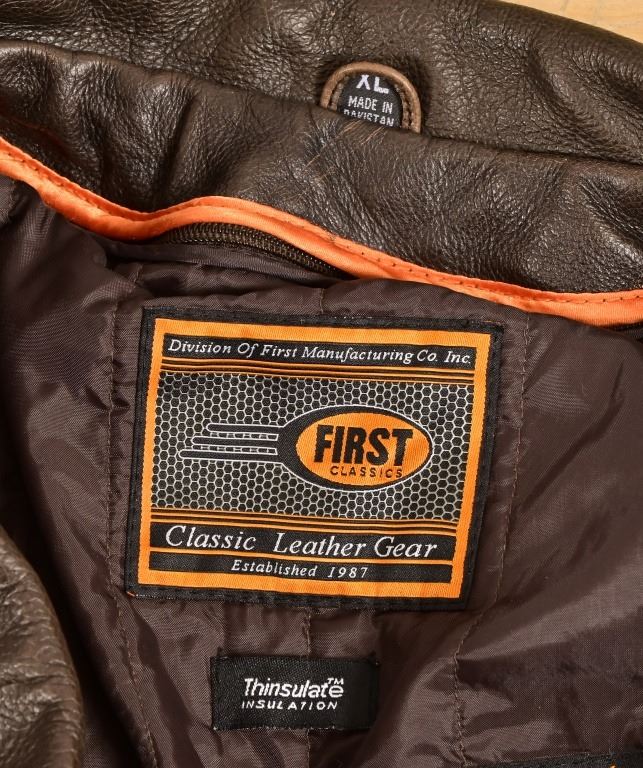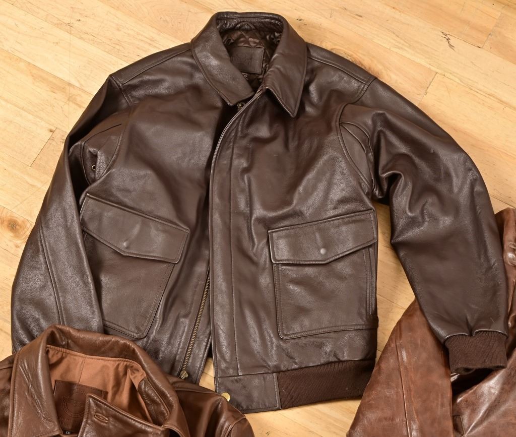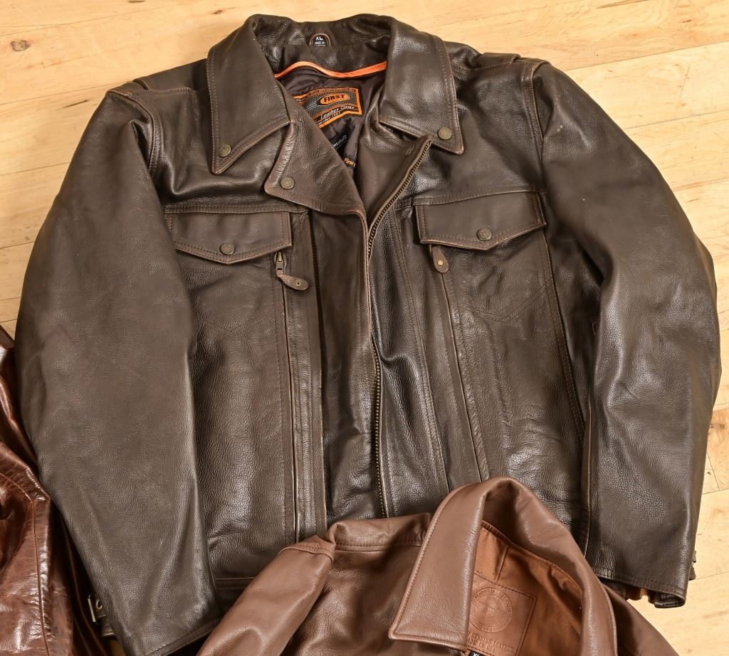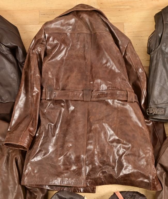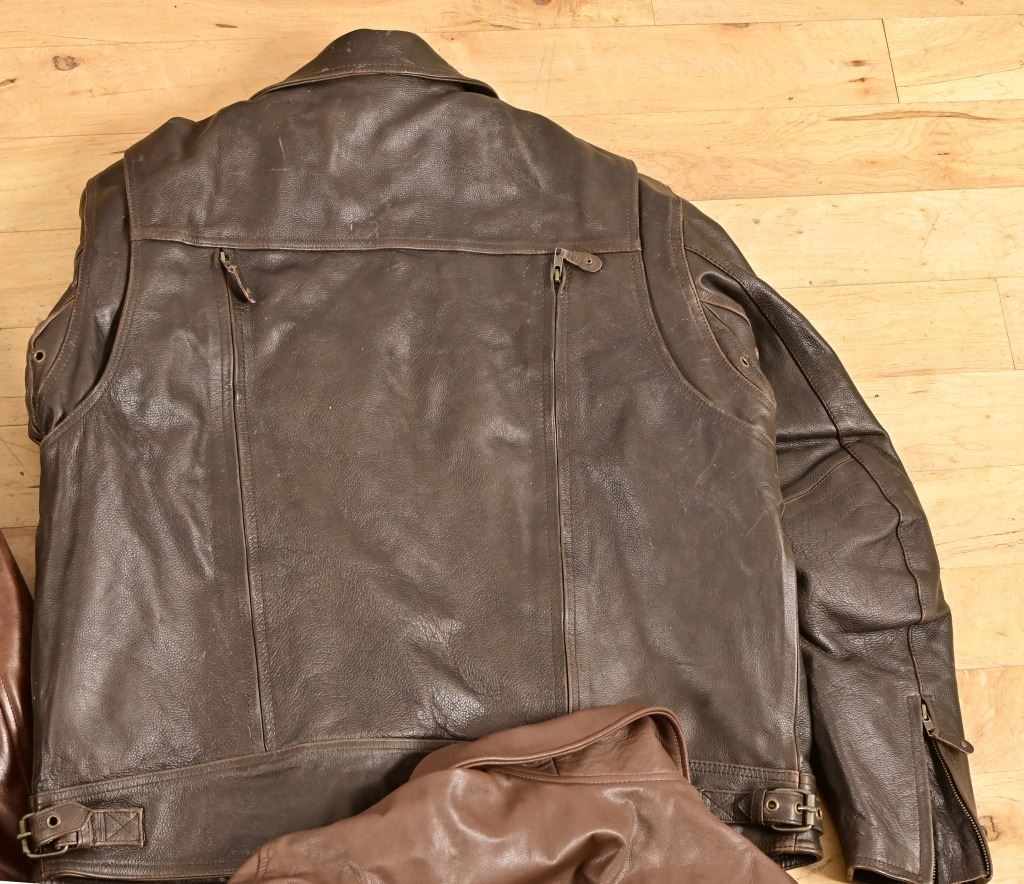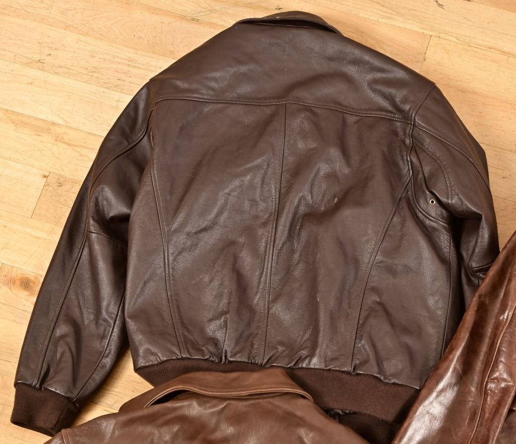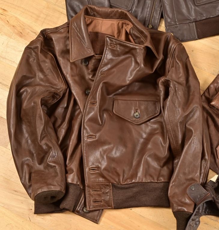 Collection of 5 leather flight jackets and 2 leather flight caps complete with goggles.