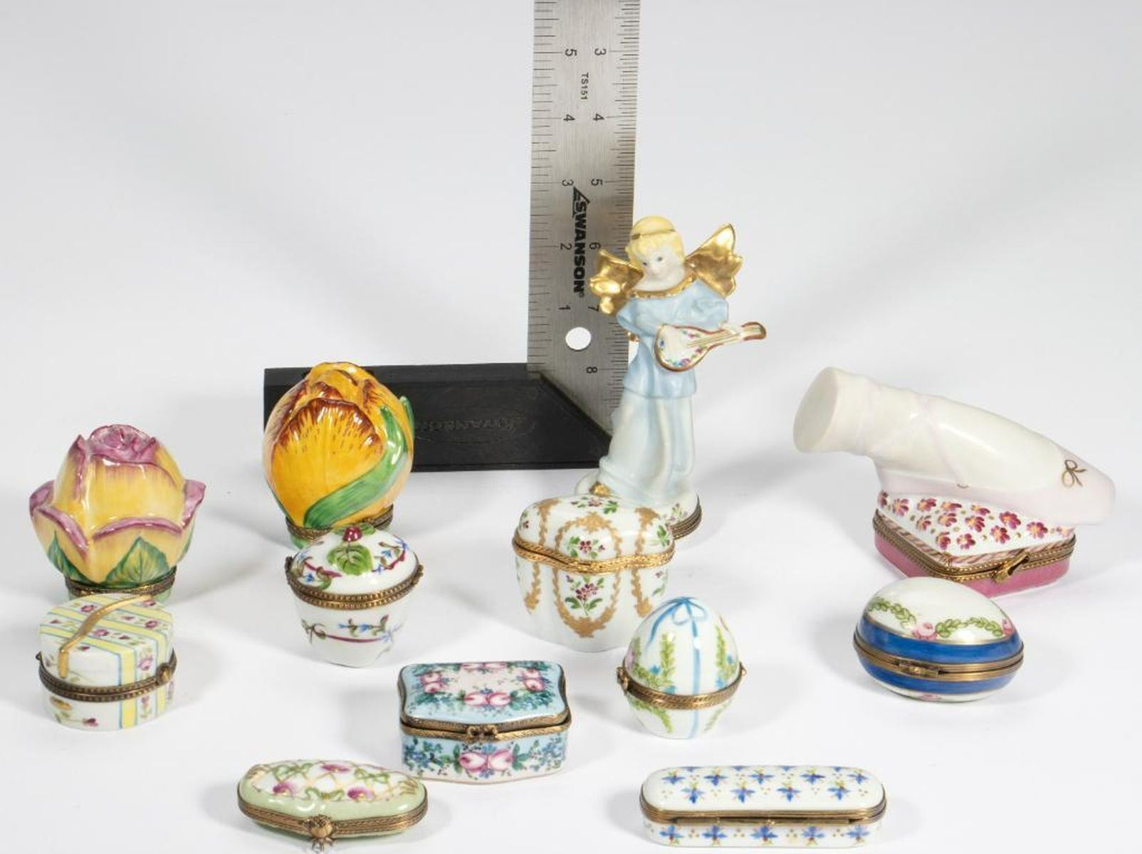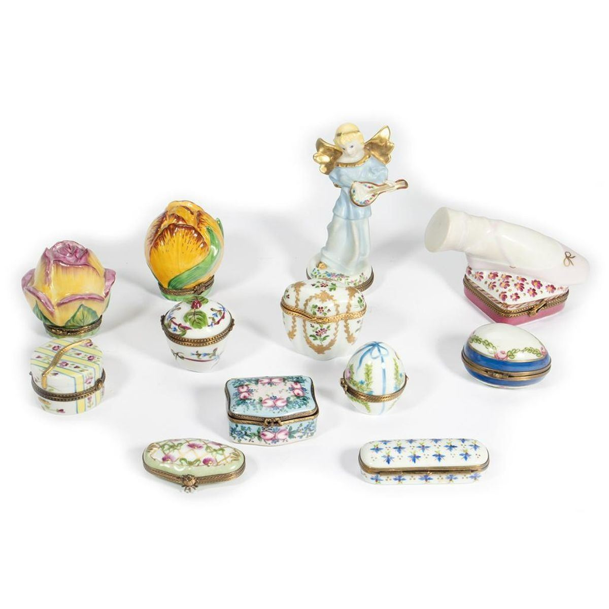 Twelve pieces, including an angel and ballet slipper. Condition: All very good.
