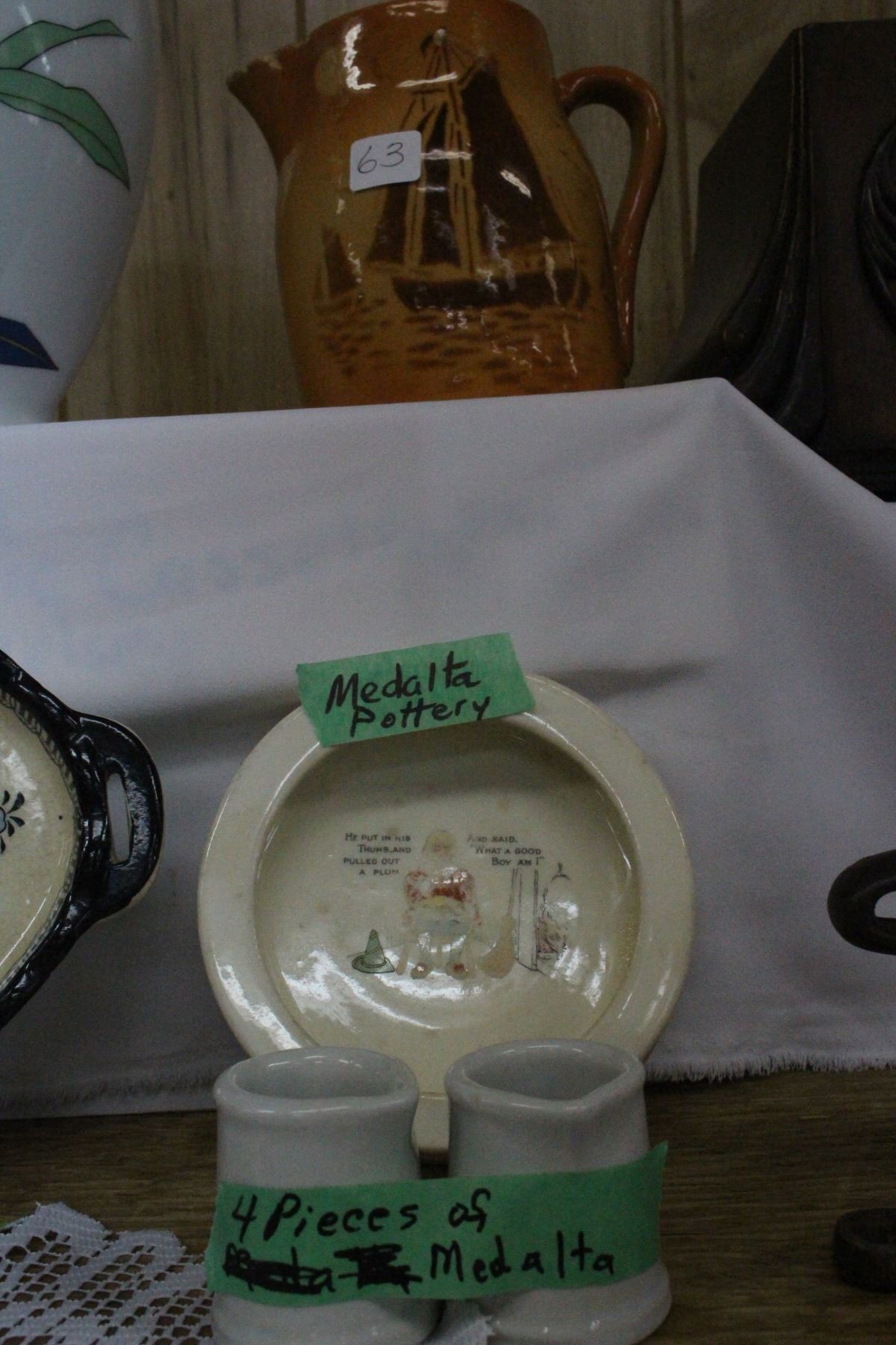 Collection of Medalta Ware - 4 pcs. - 2 Creamers, Baby Dish & Pitcher with Ship Motif