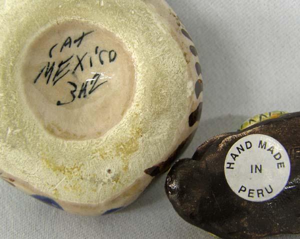 Collection of Mexican and Peruvian Ceramic Animals. Largest measures approx. 3''x3.75''. Buyers Pay Actual Shipping and Handling Charges(see terms and conditions for more information).