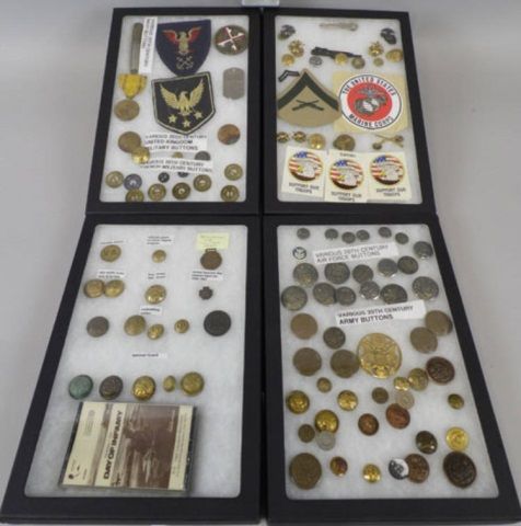 20th century including USMC, USS Hope, Hospital Ship Buttons 1944, National Guard, Navy and some foreign plus patches, cigarette case and match safe.