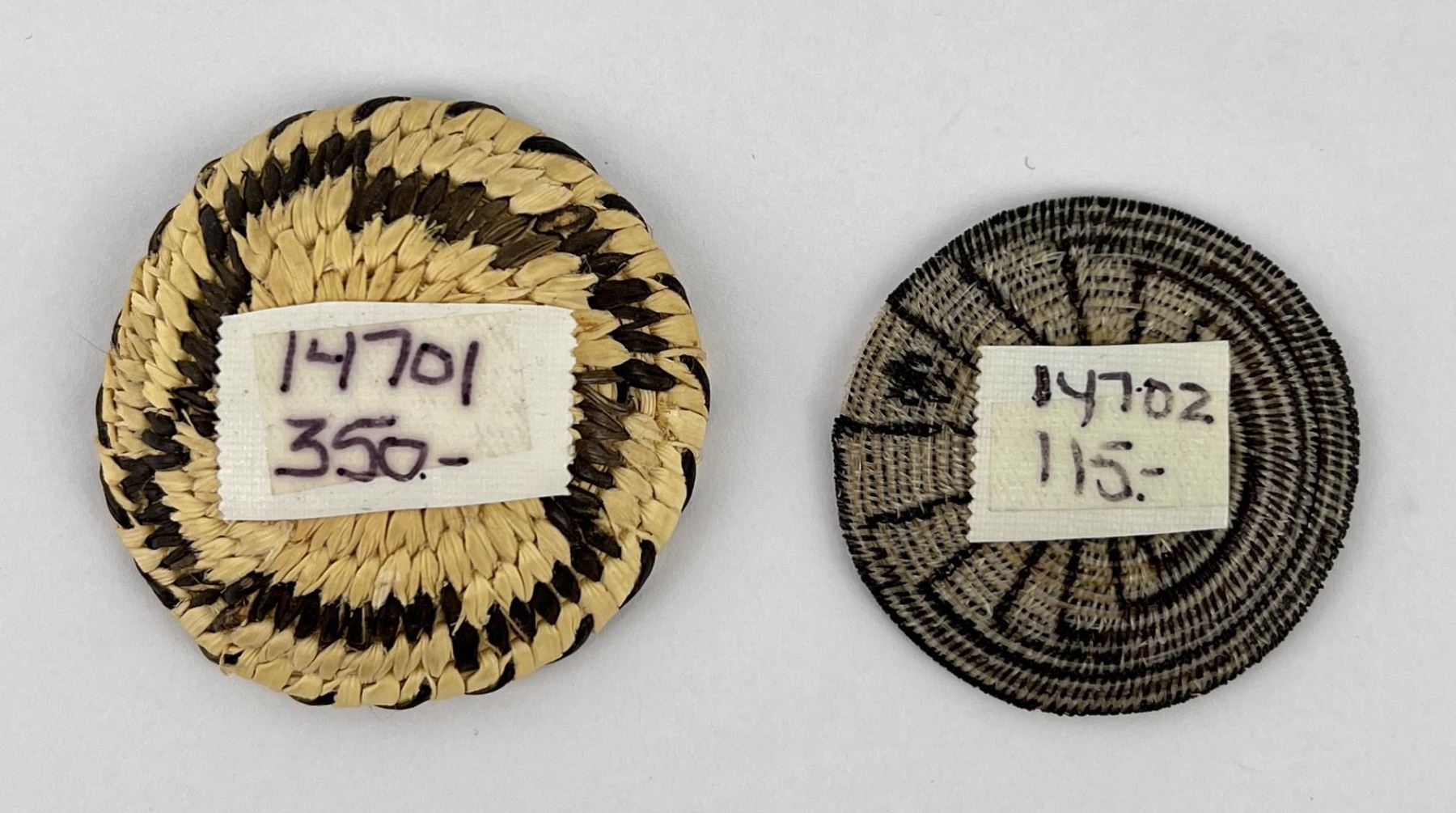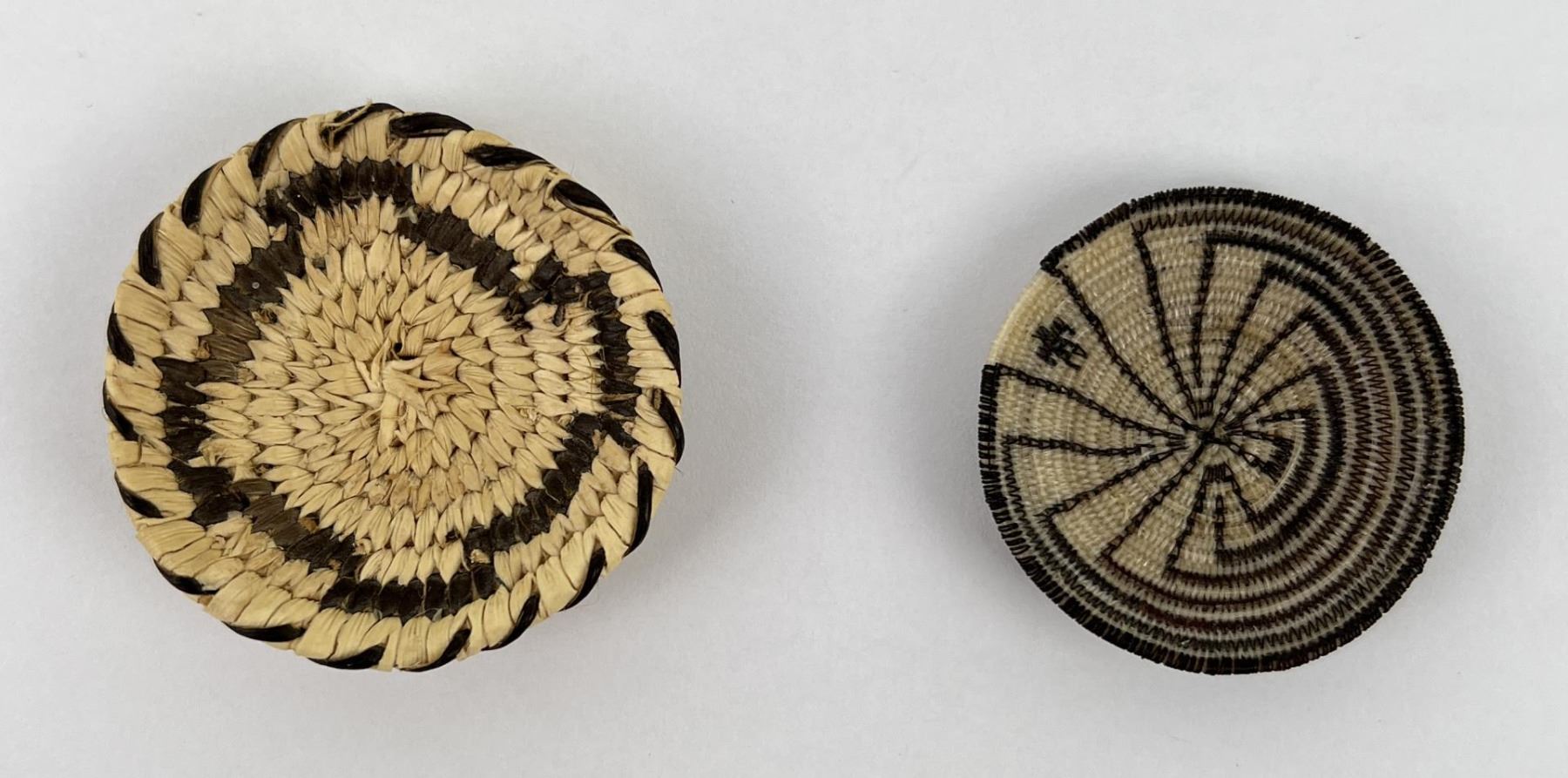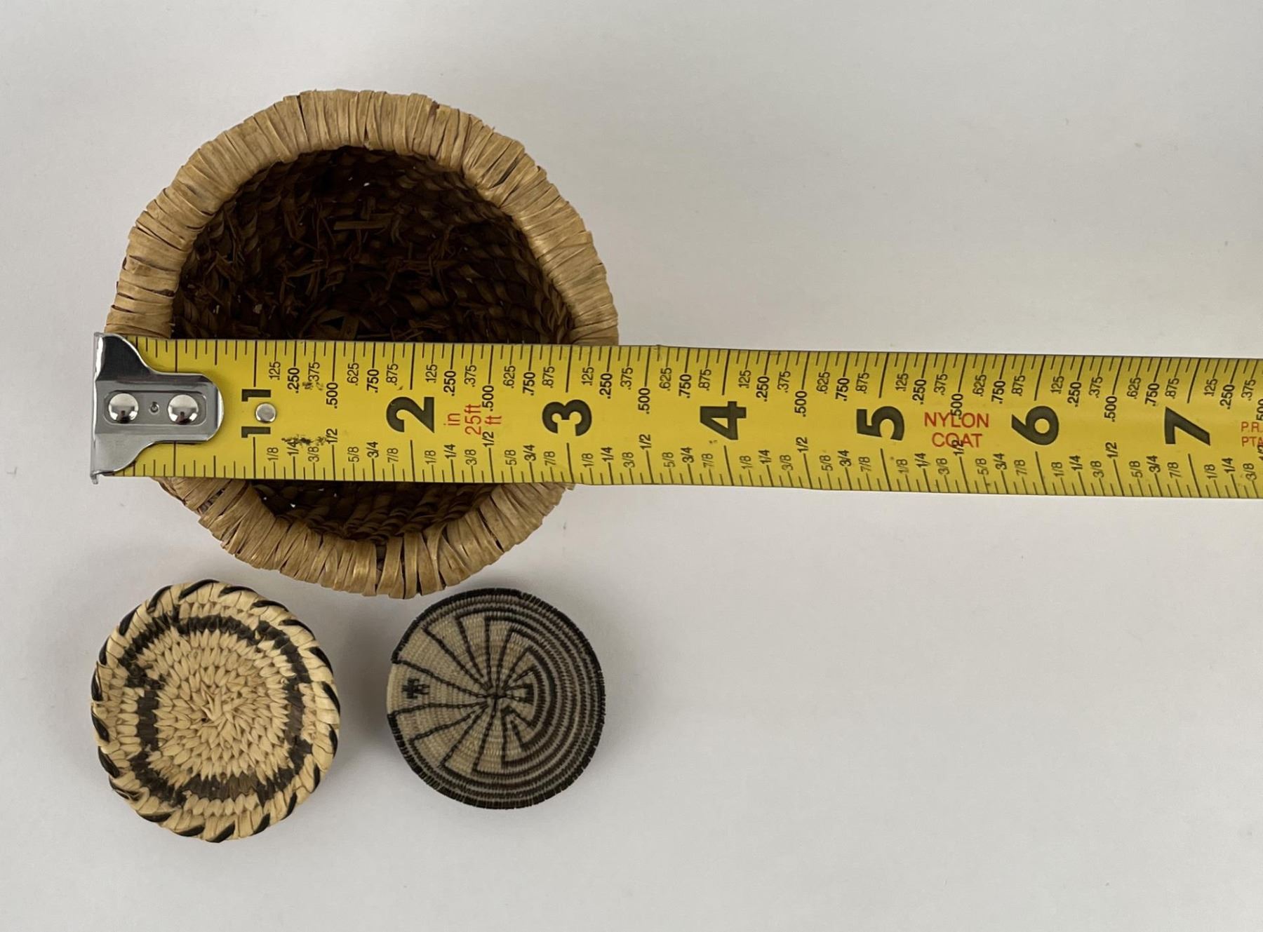 Very nice grouping. One is a man in a maze pattern woven from horsehair. The other is papago, and the third appears to be coastal. Allard Auction Collection Inv: BAR 17142