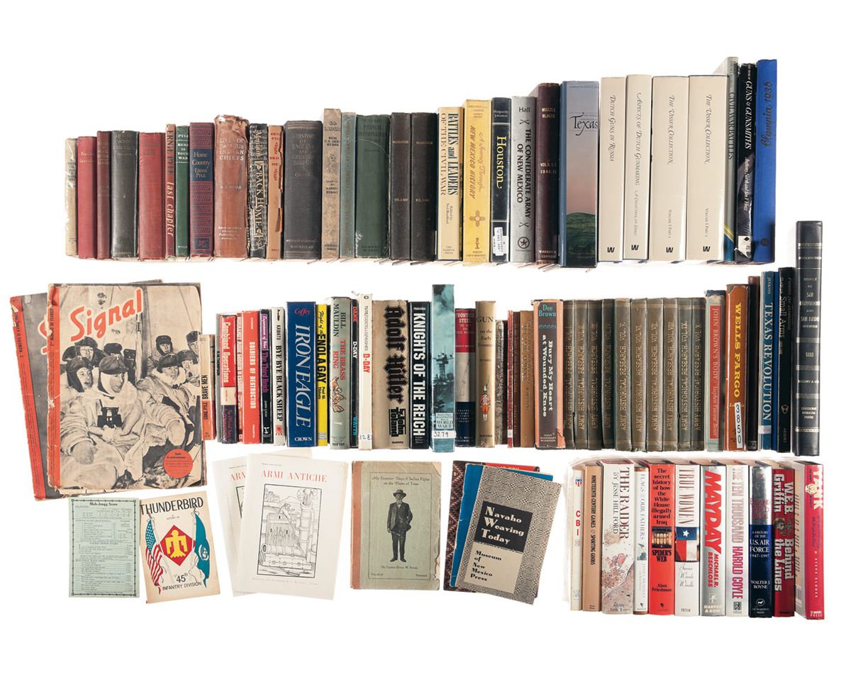 Approximately 107 Miscellaneous books related to such topics as WWII, firearms, American Southwest and Native Americans. Such titles as "The Confederate Army of New Mexico", "The Book of Guns & Gunsmiths", "The Portable Handbook of Texas", "Flight of the Enola Gay", "Knights of the Reich", "Flags of Our Fathers", "Guns on the Early Frontiers", "Bury My Heart at Wounded Knee", "Frontier Steel".