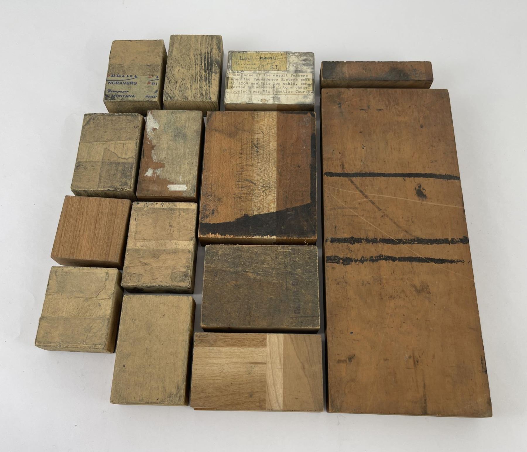 Nice group of print blocks. Total of 14. One is of the Residence of the Jesuit Fathers located near the St Ignatius Church.