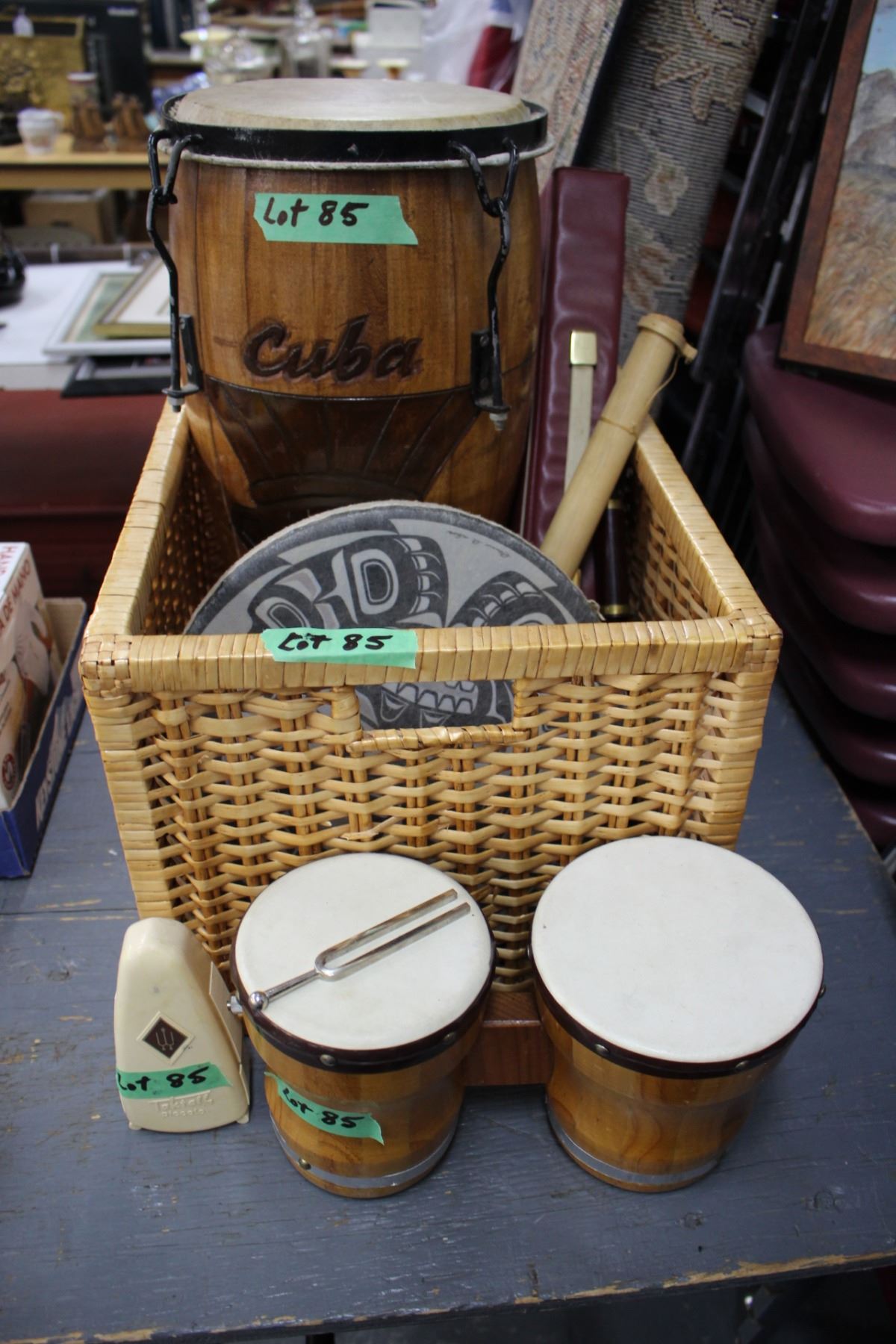 Collection of Musical Instruments & a Metronome, Cuban Drum, Bongos, Wind Instruments & Tuning Fork