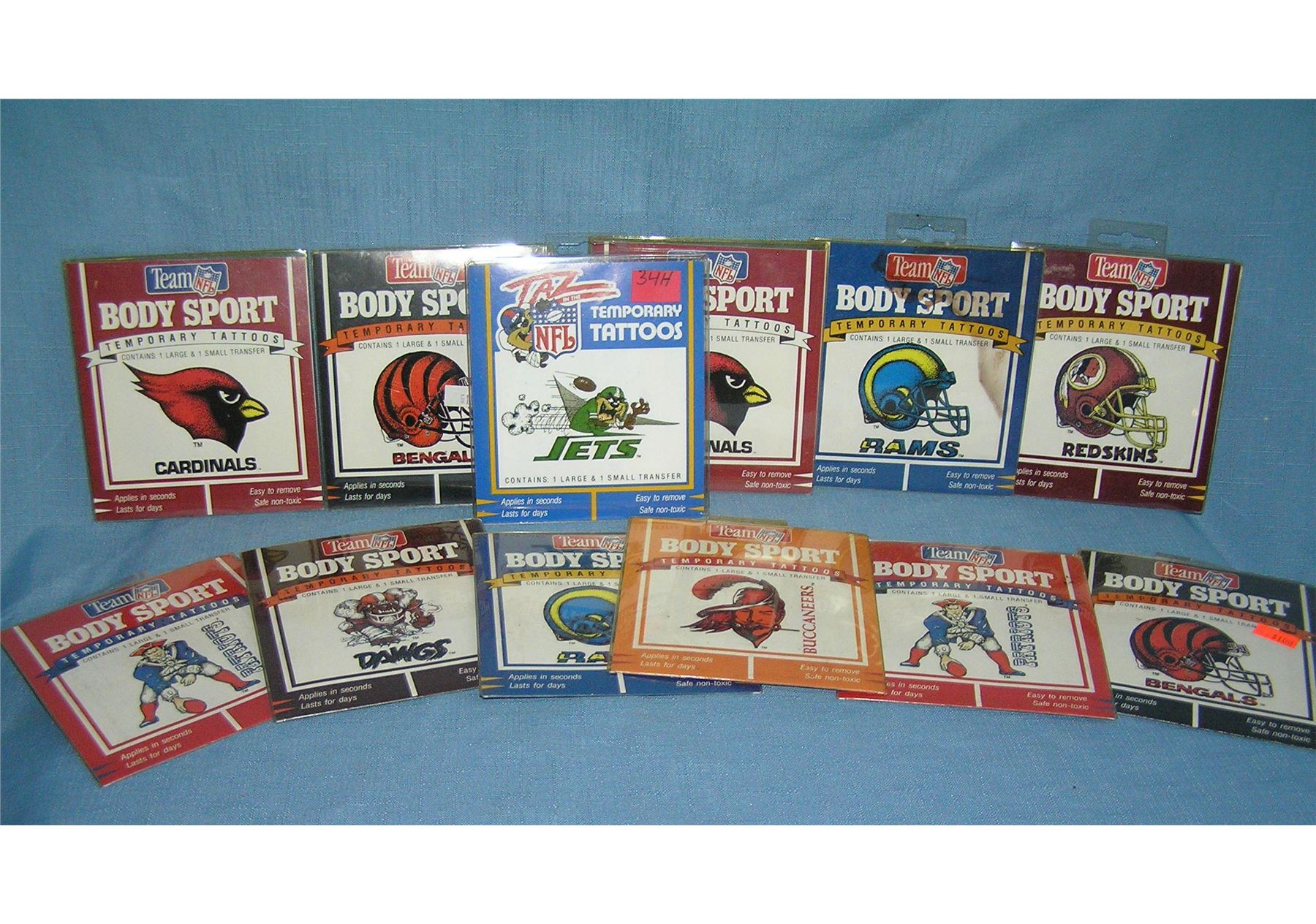 Collection of NFL temporary tattoo kits all mint on card est. value $20.00-$25.00