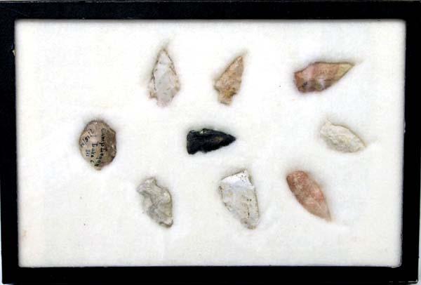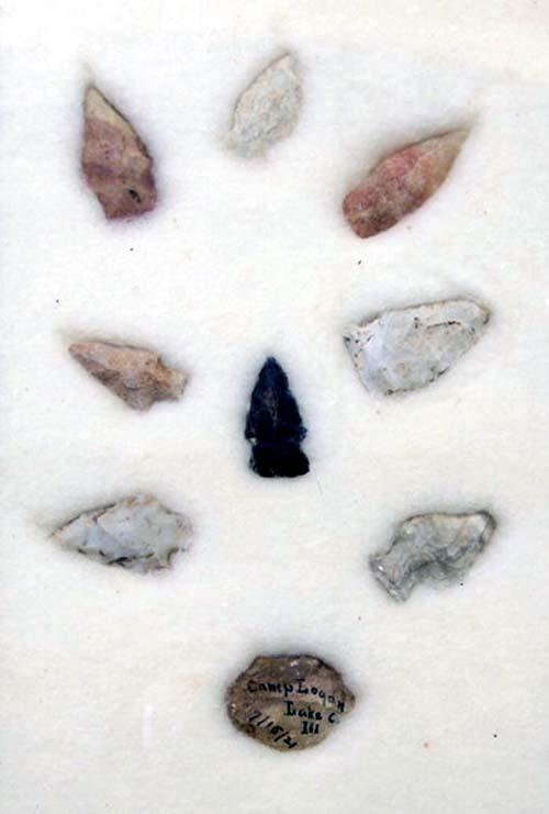 Collection of Native American Arrowheads from Camp Logan Lake County, IL 07/15/1921, largest point measures approx. 1 7/8''L x .75''W. Buyers Pay Actual Shipping and Handling Charges(see terms and conditions for more information)