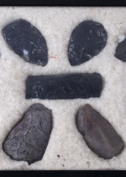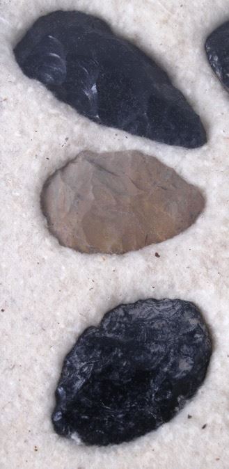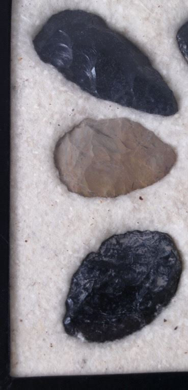 For your bidding pleasure are these Collection of Native American Artifacts. The collection includes eleven spearheads, knives and scrapers. These artifacts were collected in Idaho and Montana. They show good to fair condition with a couple of the tips broke off top of knives or spearheads. The measurements of this collection range from 1 3/4" to 3 1/4". The frame measures 12" x 8 1/4".
