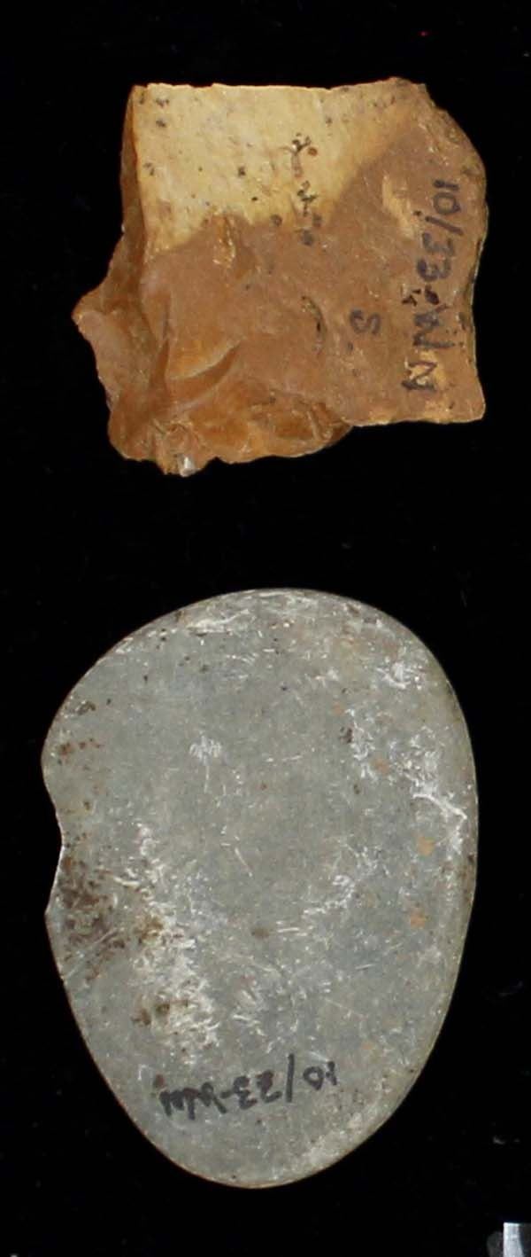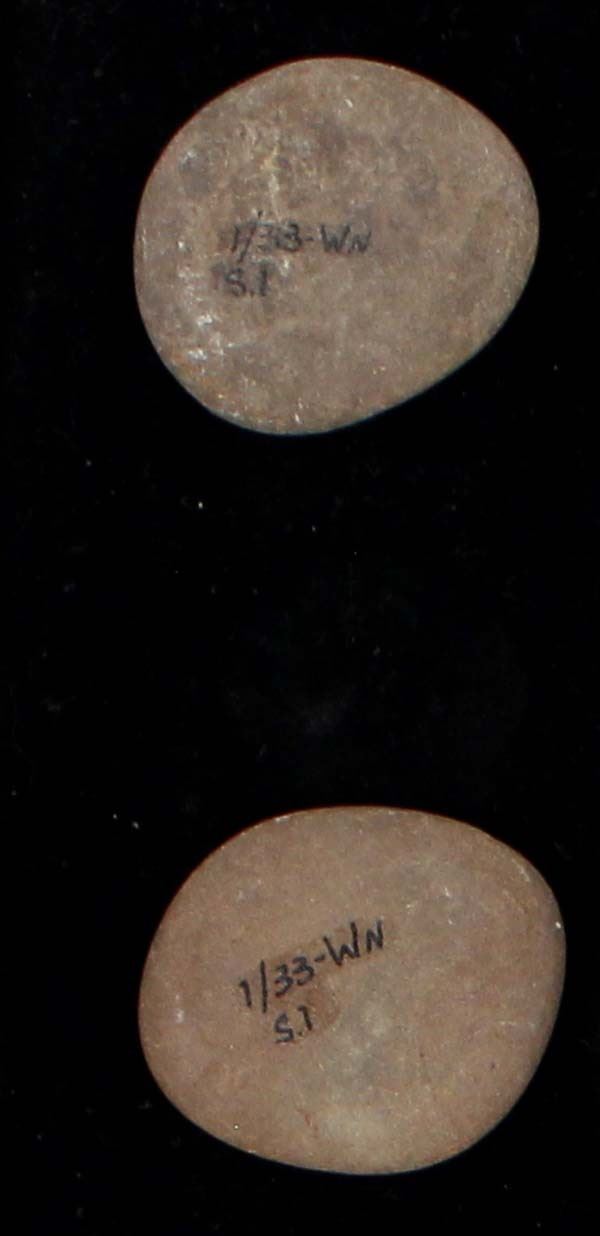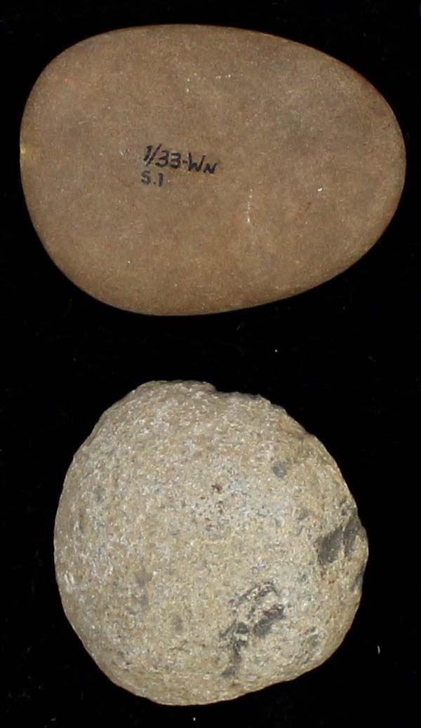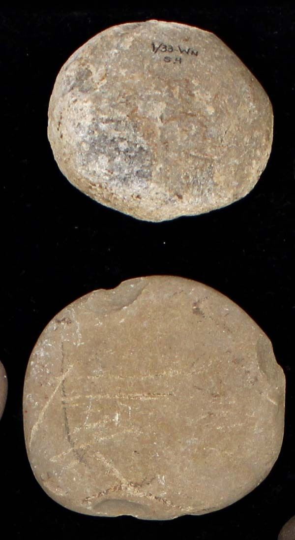 Collection of Native American Smoothing Stones, Game Ball, Flint, and Flint Core, largest measures 3''D, 10 of the pieces have inventory numbers on them