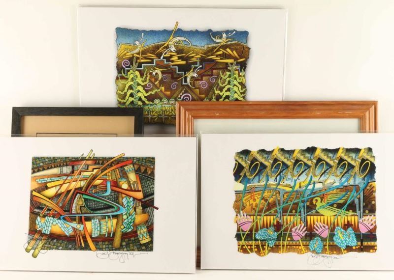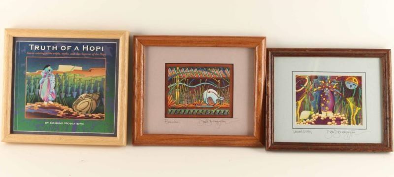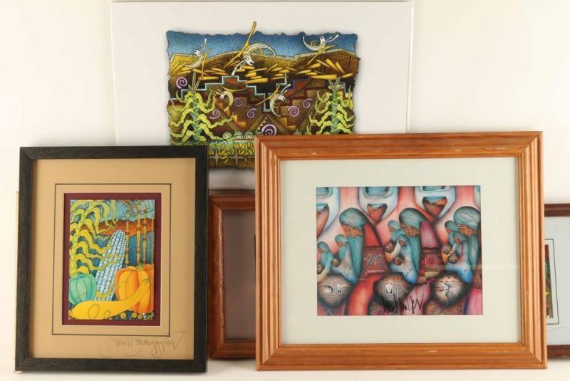 smaller pieces, most framed, many signed, several by David Dawangyumptewa. Includes several T-shirts.