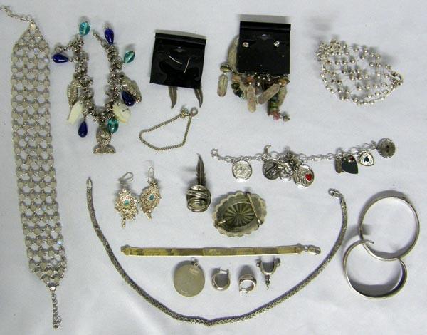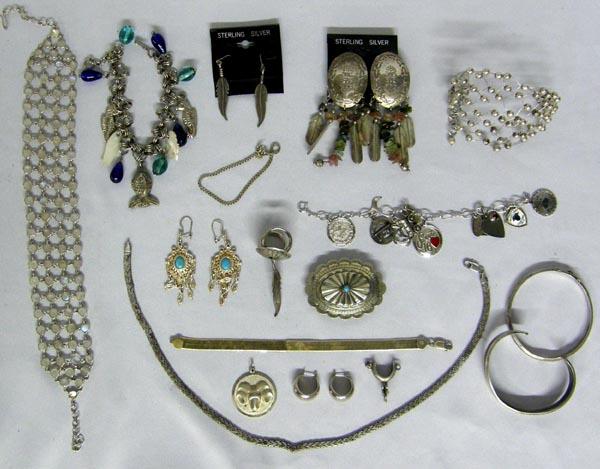 Collection of 17 Necklaces, Earrings, & Bracelets, some Native American. Longest necklaces measures 16'' end to end. Largest bracelet is 8.5'' end to end. Some are sterling silver. Buyers Pay Actual Shipping and Handling Charges(see terms and conditions for more information).
