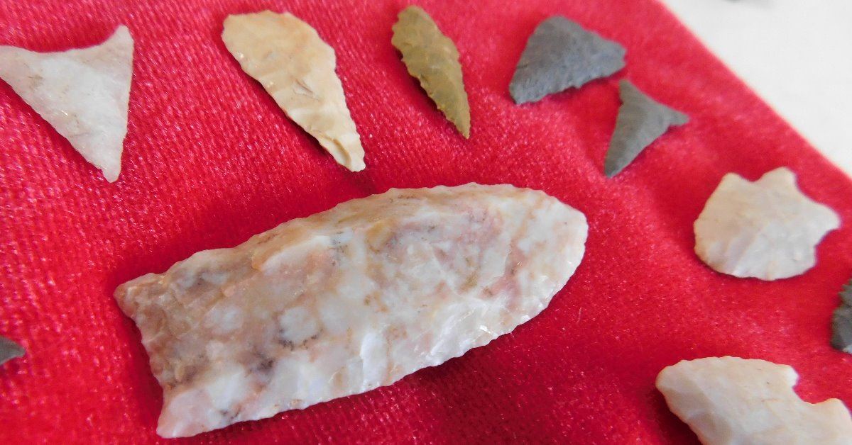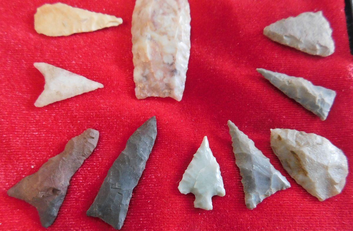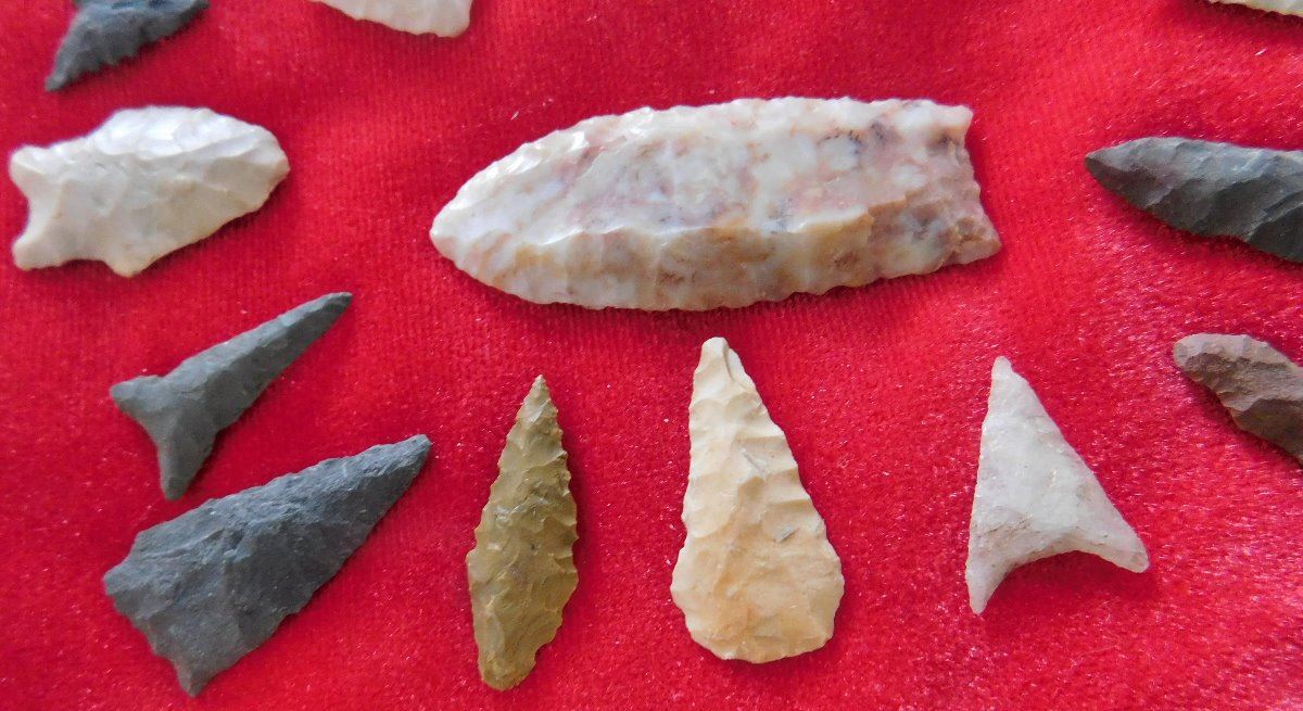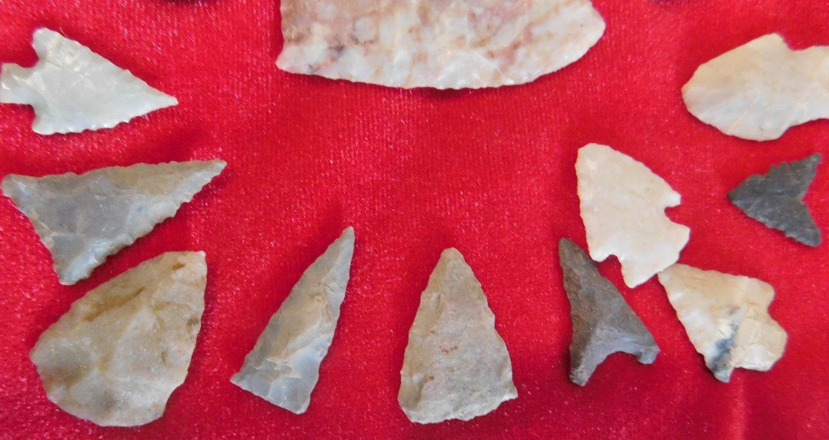 Collection of New Mexico Points, paleo to historic periods. Made of alibaster, chert and flint, the items are 1" to 2.5". Eastern New Mexico. Frame not included. Condition: Some points have chips, see images. Shipping: $20.00 w/insurance and signature.