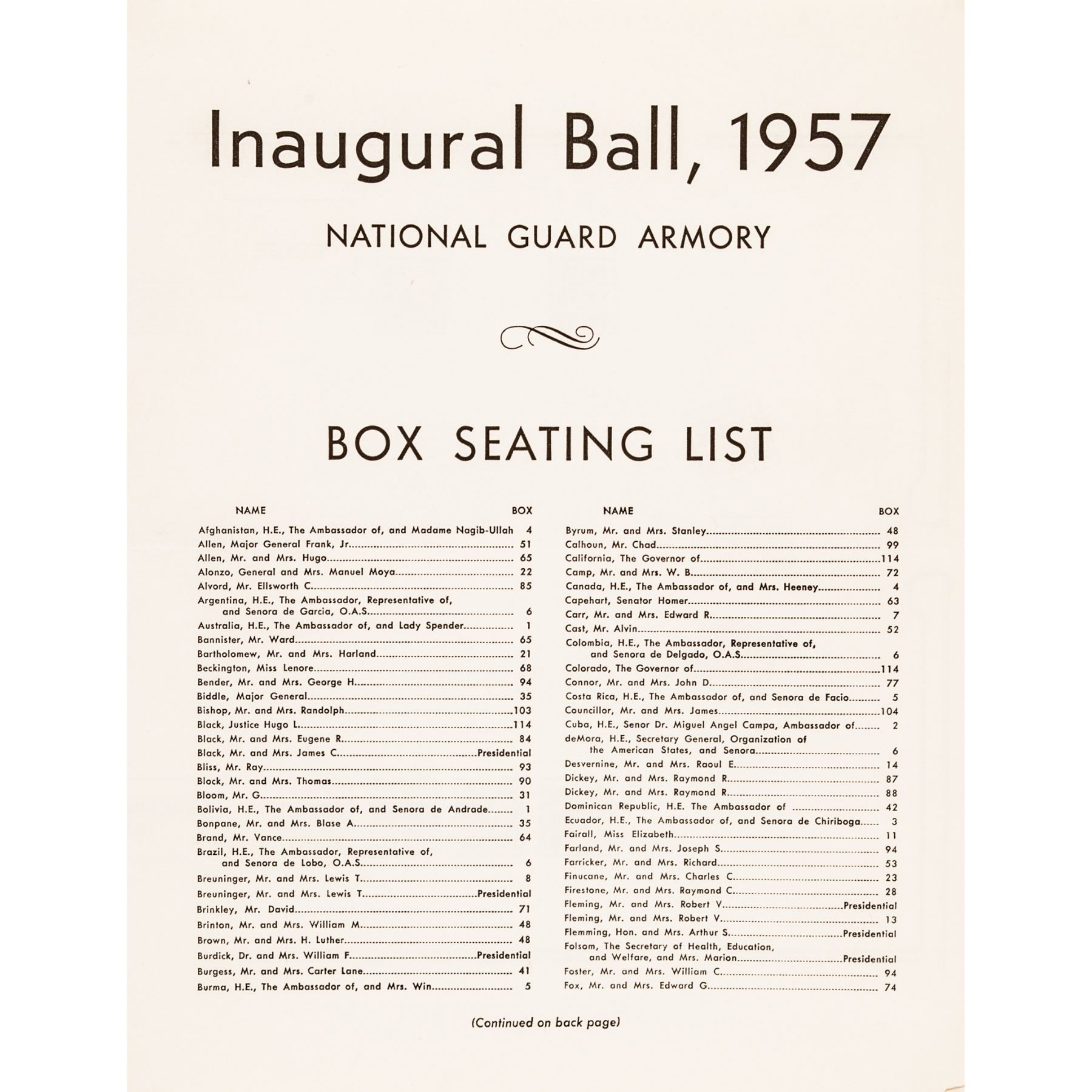 1. 1957-Dated, Eisenhower and Nixon Original Inaugural Ball Program and Box Seat List for Eisenhower and Nixon.