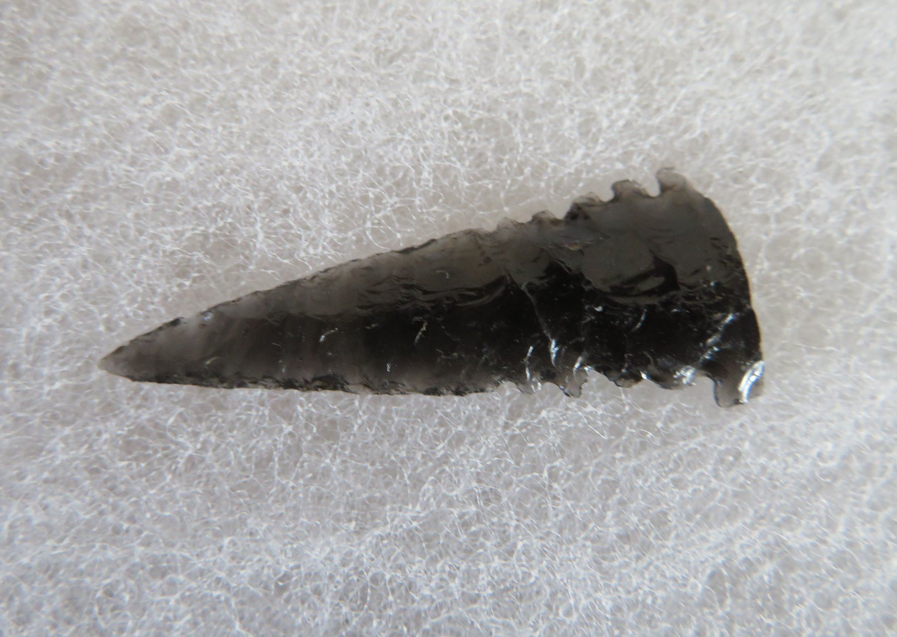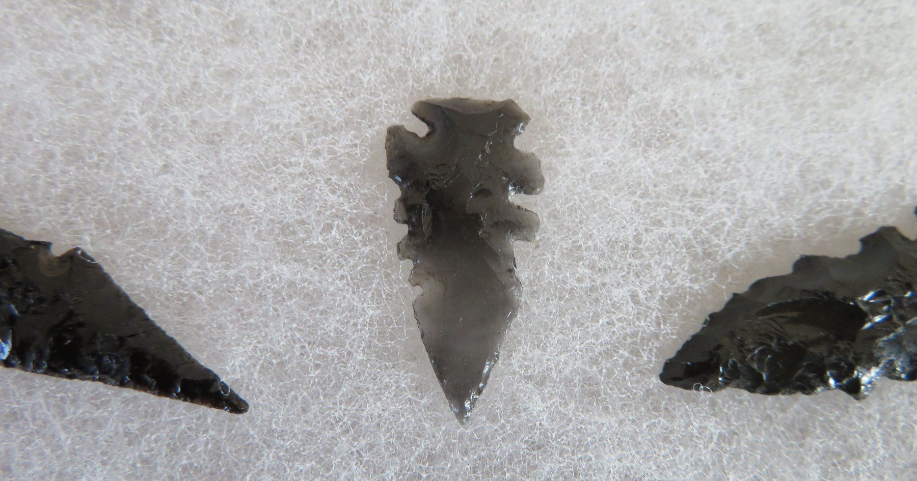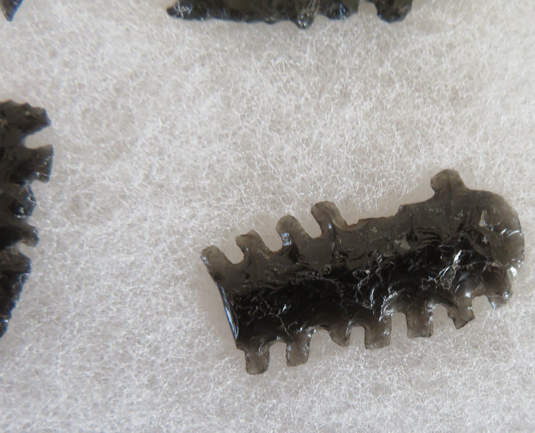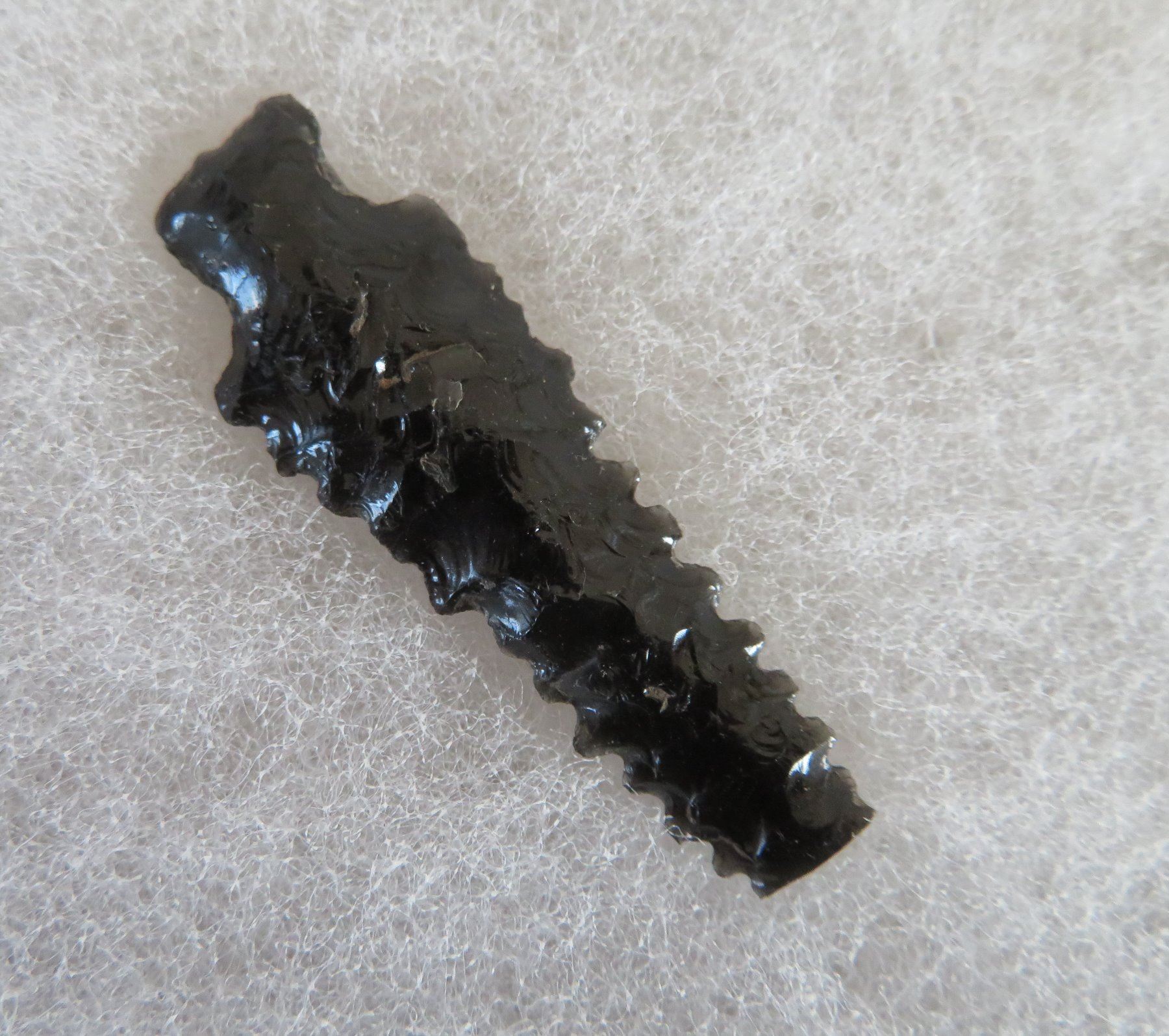 Collection of Obsidian Artifacts, pre-historic items. Made of obsidian, the largest measures 2 1/2". Stockton, California. Very rare serrated Stockton points. Frame not included. Condition: Many damaged, see images. Shipping: $25.50 w/insurance and signature, due to value.