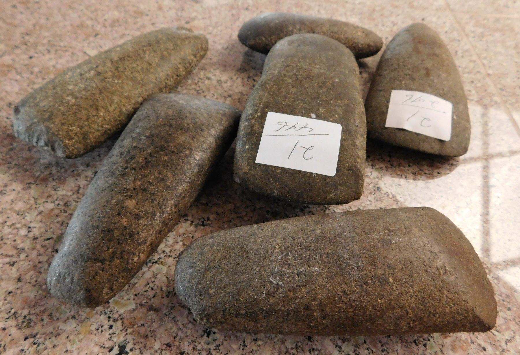Collection of Ohio Celts, pre-historic items. Made of basalt, the largest is 4 1/2". Ross County, Ohio. Condition: As found, chip on one corner, see images. Shipping: $22.00 w/insurance and signature.
