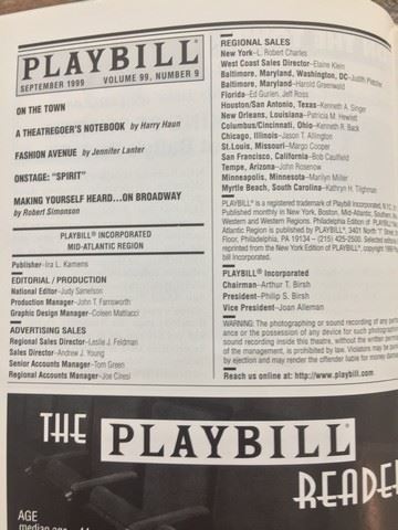 Collection of 10 Playbill's from the Merriam Theater including, "A Chorus Line", "Evita", "Rent", "Grease", "42nd Street", "Chicago", "The Beauty Queen", "Stomp", "Spirit", and "Camelot". (Approx. 10"x6" each)