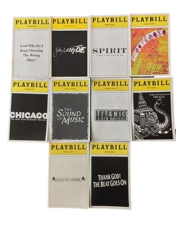 Collection of 10 Playbills from The Merriam Theater including, "Lord Why Do I Keep Choosing the Wrong Man", "Jekyll and Hyde, "Sprit", "Thank God The Beat Goes On", "Angels in America", "Chicago", "The Sound of Music", "Titanic", "Footloose", and "The King and I". (Approx. 10"x6" each)
