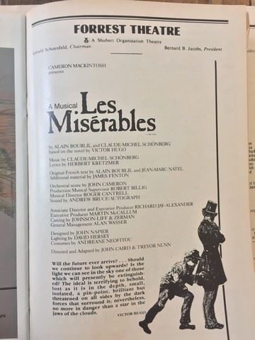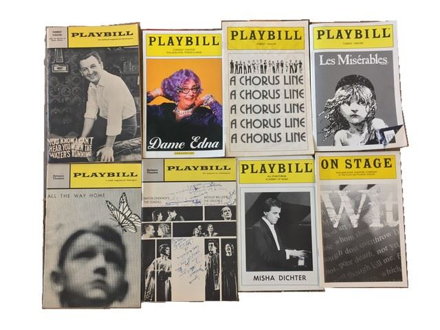 Collection of 8 Playbills from The Forest Theater in Philadelphia, The Philadelphia Theater Company, All Star Forum, and Belasco Theater. For the theater lover, this is an amazing addition to any Playbill collection. Includes "The Chorus Line" "Les Misérables", "All The Way Home", "Wit", "The Crucible" and "Dame Edna". (Approx. 10"x6" each).