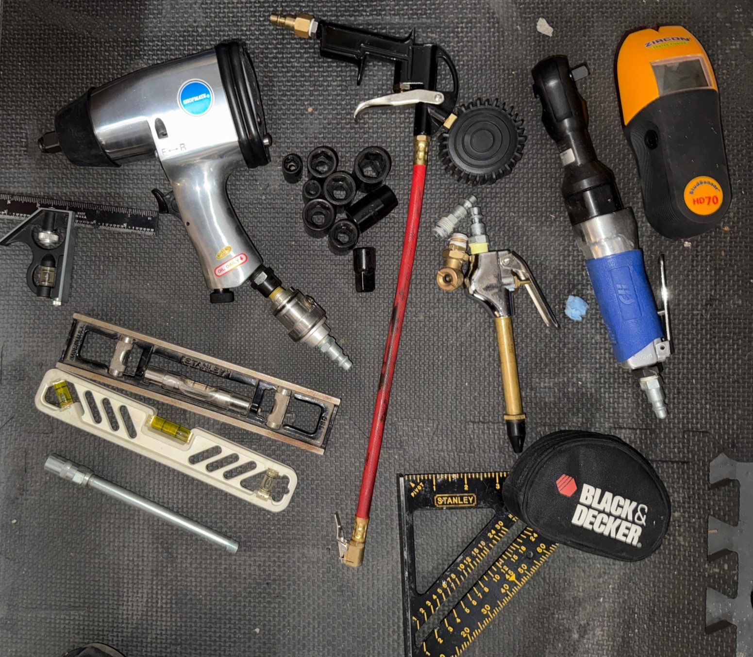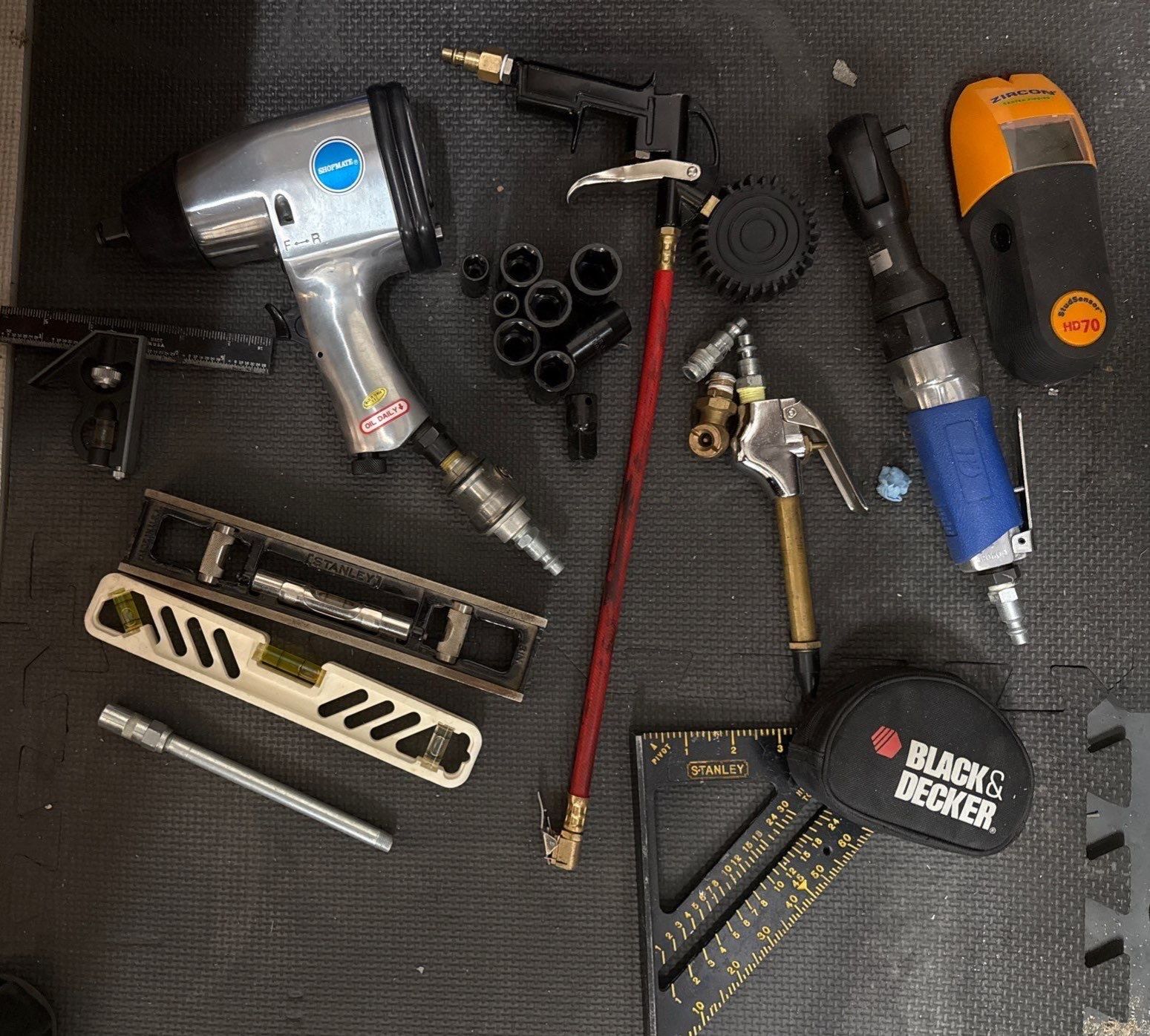Collection of Pneumatic Tools Powered By Compressed Air-Impact Wrench, Air Blow Gun