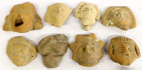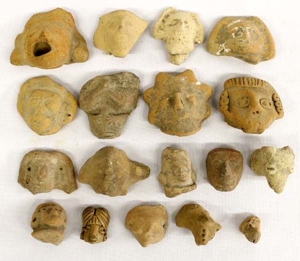 Collection of PreColumbian Pottery Heads, largest measures 2.25'' x 2.25''