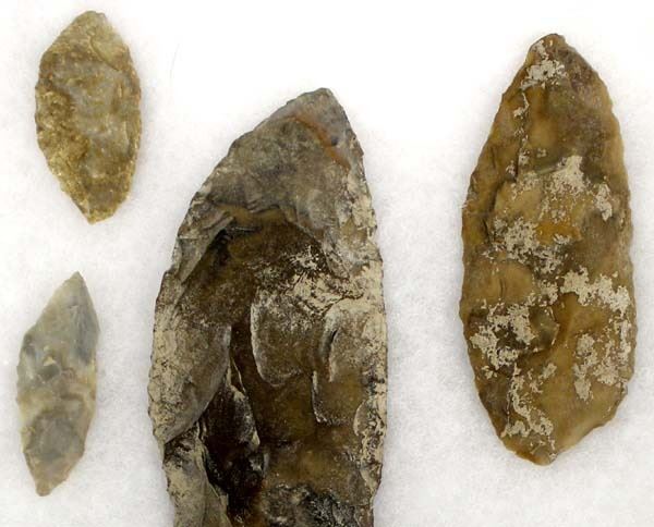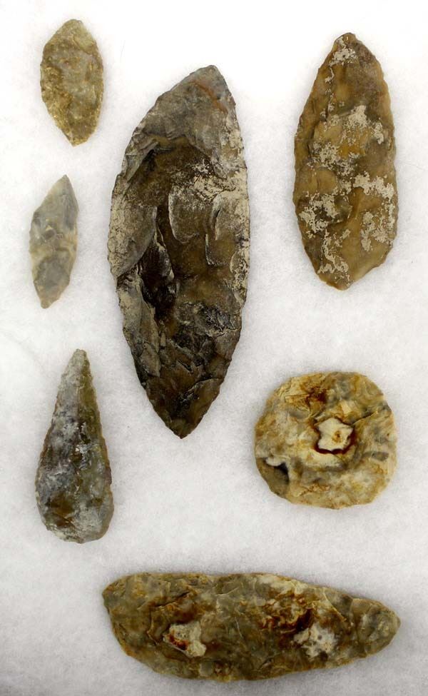 Collection of Native American Prehistoric Spearpoints, longest measures 6'' x 2.5''