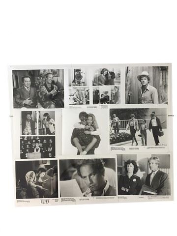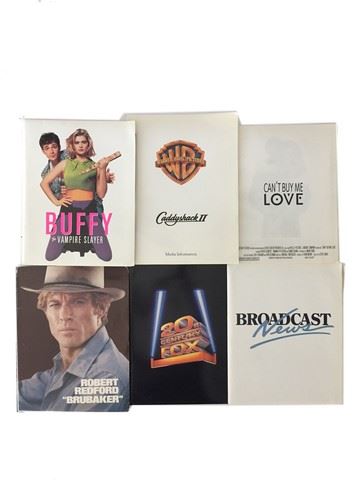 Collection of 6 press kits with black and white publicity stills included, sized mainly 8x10's. (1970's-80's). From Touchstone Pictures "Can't Buy Me Love" (1987), from Warner Brothers "Caddyshack II" (1988), from 20th Century Fox "Broadcast News" (1987), from 20th Century Fox "Buffy The Vampire Slayer" (1992), from 20th Century Fox "The Buddy System" (1984), from 20th Century Fox "Brubaker" (1980). Also included are a collection of publicity stills from various movies ~50.