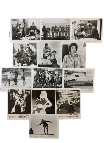 Collection of 4 press kits with black and white publicity stills included, sized mainly 8x10's from various movie studios (1970's-80's). From MGM Entertainment Company "Strange Brews"(1983) starring Dave Thomas as Doug McKenzie, Rick Moranis as Bob McKenzie, and Max Von Sydow as Brewmeister Smith, includes 5 stills. From Nelson Entertainment "Street Fight" (1975) by Ralph Bakshi's animation includes 3 stills. From 20th Century Fox "The Stunt Man" (1980) starring Peter O Toole as Eli Cross, Steve Railsback as Cameron, and Barbara Hershey as Nina Franklin, includes 6 stills. From Filmways Pictures "Summer Lovers" starring Peter Gallager as Michael Pappas, Daryl Hannah as Cathy Featherstone, and Valerie Quennessen as Lina Broussard, includes 12 stills.