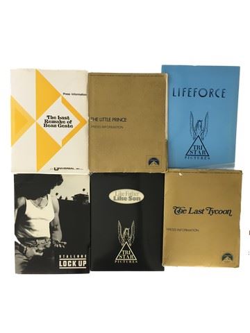 Collection of 6 press kits with black and white publicity stills included, from various movie studios, sized mainly 8x10's. (1970's-80's). From Universal "The Last Remake of Beau Geste (1977), from Paramount Pictures" The Little Prince" (1974), from Tri-Star "LifeForce"(1985), from Tri-Star "Lock Up" (1989), from Tri-Star "Like Father Like Son" (1987), from Paramount Pictures "The Last Tycoon"(1976).
