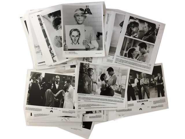 Collection of upcoming releases from various studios and black and white publicity stills ~100. From 20th Century Fox release 1988 "Statisfaction", "A Night In The Life of Jimmy Reardon", "Off Limits", "Bad Dreams", from 20th Century Fox "Cocoon" (1985), from the black and white stills some of the movies are "Making Mr. Wright" (1987), "Hoosiers" (1986), "Radio Days" (1987), "The Three Amigos" (1986), "Light of Day" (1987), "Let's Get Harry" (1986), "8 Million Ways to Die" (1986), "Firewalker" (1986), and so many more.