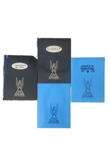 Collection of 3 press kits and 1 release schedule, each kit comes with its own set of black and white publicity stills, mainly 8"x10"s. From Tri Star Pictures (circa 1980's),~50 stills in all. "Sweet Dreams (1985) - this is the story of Patsy Cline played by Jessica Lange, who won Best Actress in a leading role in 1986, also starring Ed Harris as Charlie Dick, Ann Wedgeworth as Hilda Hensley, this press kit also comes with 10 stills and a release kit with 15 stills included. "Suspect" (1987), this is a murder mystery with Cher as Kathleen Riley the lawyer who uncovers a massive conspiracy. Also starring Liam Neeson as Carl Wayne, Dennis Quaid as Eddie Sanger, and Joe Mantegna as Charlie Stella. This comes with 9 stills. "Sweet Hearts Dance" (1988) - this is the story of two small town couples, one married one at the beginning of their relationship, starring Susan Sarandon as Sandra Boon, Don Johnsons as Wiley Boon, and Elizabeth Perkins as Adie Nims. Comes with 15 stills.