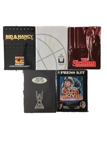 Collection of 5 press kits with black and white publicity stills included, sized mainly 8x10's from various movie studios. (1970's-80's). From Universal Studios "Sea of Love" (1989) starring Ellen Barkin as Helen, Al Pacino as Det. Keller, and John Goodman as Det. Sherman, includes 10 stills. From Tri Star Pictures "Short Circut" (1986) starring Alley Sheedy as Stephanie Speck, Steve Guttenberg as Newton Crosby, and Fisher Stevens as Ben Jabituya, includes 10 stills. From 20th Century Fox "Sicilian" (1987) starring Christopher Lambert as Salvatore, Joss Ackland as Don Masino, and John Turturro as Gaspare, includes 7 stills. From Embassy Home Entertainment "Sid & Nancy" (1986) starring Gary Oldman as Sid Vicious, Chloe Webb as Nancy Spungen, and David Hayman as Malcom, includes 5 stills. From 20th Century Fox "Silent Movie" (1976) starring Burt Reynolds as himself, James Caan as himself, and Liza Minnelli as Herself, no stills included.