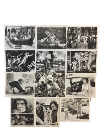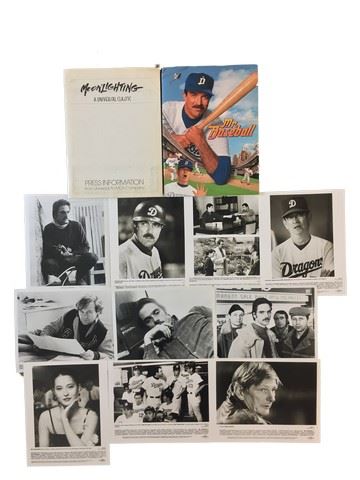 Collection of 2 press kits with black and white publicity stills included with each kit (~20 in each), mainly 8"x10"s. Press kits come from United Artists (1960's-90's). Includes "Mr. Baseball" (1992) - this depicts a tumultuous season in the career of a veteran New York Yankees' first basemen Jack Elliot, who is traded to the Chunichi Dragons of the Japanese Central League during spring training and forced to contend with overwhelming expectations and cultural differences. Stars Tom Selleck as Jack Elliot, Ken Takura as Uchiyama, Ava Takanashi as Hiroko Uchiyama and Dennis Haysbert as The Hammer. Also includes the press kit from "Moonlighting"(1982). Stars Jeremy Irons as Norwalk, Eugene Lipinski as Banaszak, and Jiri Stanislav as Wolski. Movie stills from the film "Moonraker" (1979) are also included. Stars Roger Moore as James Bond. "American Graffiti" (1962) publicity stills also included. Stars Ron Howard as Steve, and Harrison Ford as Bob Falfa.