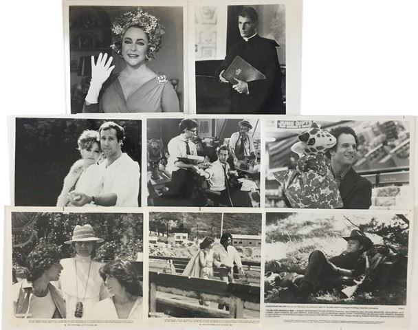 Collection of 6 press kits with black and white publicity stills included, sized mainly 8x10's. (1980's). From AFD "The Mirror Cracked" (1980), From 20th Century Fox "Modern Problems" (1981), from Columbia Pictures "Modern Romance"(1981), from 20th Century Fox "Mosignor" (1982), from Universal "Moment by Moment" (1978), from Universal "the Milagro Beanfield War" (1987).