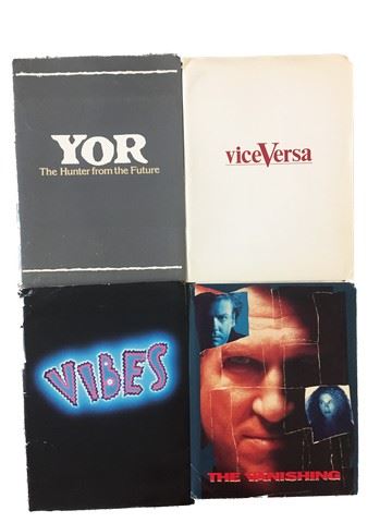 Collection of 4 press kits with black and white publicity stills included, sized mainly 8x10's from 20th Century Fox (1980's-90's)"Yor, The Hunter From the Future" (1983) starring Reb Brown as Yor, Corinne Clery as Kala, and Luciano Pigozzi as Pag, includes 6 stills. "Vice Versa"(1988) a father and son swap bodies and cannot switch back, starring Judge Reinhold as Marshall, Fred Savage as Charlie, and Connie Bohrer as Sam, includes 4 stills. "Vibes" (1988), starring Cyndi Lauper as Sylvia Picket, Jeff Goldblum as Nick, and Peter Faulk as Harry, 4 stills included. "The Vanishing" (1993) starring Jeff Bridges as Barney, Nancy Travis as Rita Baker, and Kiefer Sutherland as Jeff Harriman, 9 stills included.