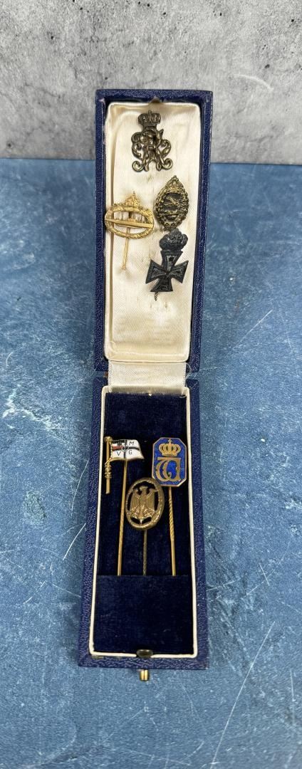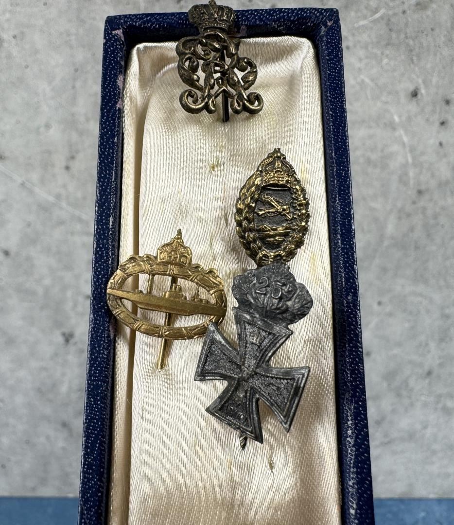 Nice grouping. U-Boot Badge, M1913 Prussian Pilot, 25 Year Iron Cross, and more.