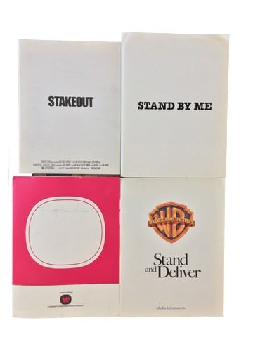 Collection of 4 press kits with black and white publicity stills included, sized mainly 8x10's from various movie studios (1970's-80's) A large collection of ~50 stills included as well from various movies. From Touchtone Pictures "Stakeout" (1987) starring Richard Dreyfus as Chris Lecce, Emilio Estevez as Bill Reimers, and Madeline Stowe as Maria McGuire, includes 2 stills. From Warner Bros "The Song Remains the Same"(1976) by Led Zeplin, the long awaited cinimatric performance which took over 3 years to make. This is a personal and private tour for fans, a front row seat so to speak. With their music as atour guide you are taken from the frenzy of their 1973 concert in Madison Square Gardern to their idyllic serenity of the British countryside, includes 4 stills. From Columbia Pictures "Stand By Me" (1986) starring Will Wheaton as Gordie, River Phoenix as Chris, and Corey Feldman as Teddy, includes 3 stills. From Warner Brothers "Stand and Deliver" (1988) starring Edward Olmos as Jamie Escalante, Estelle Harris as Secretary, and Virginia Paris as Raquel Ortega, includes 2 stills.